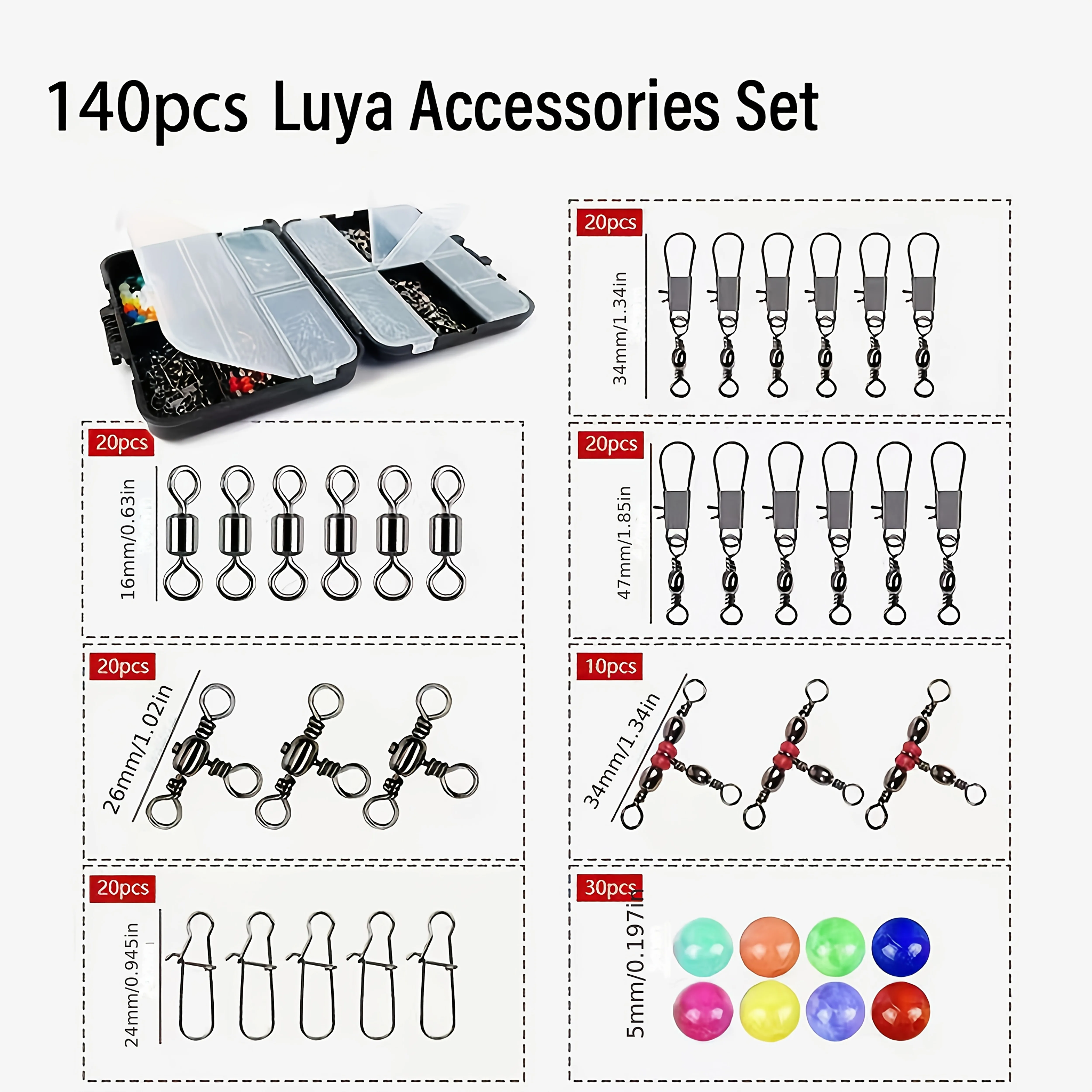 Componentes Premium: Incluye ganchos resistentes al óxido, plomos ajustables, giratorios duraderos, topes flotantes y más.Preorganizado en un estuche compacto para fácil acceso.
