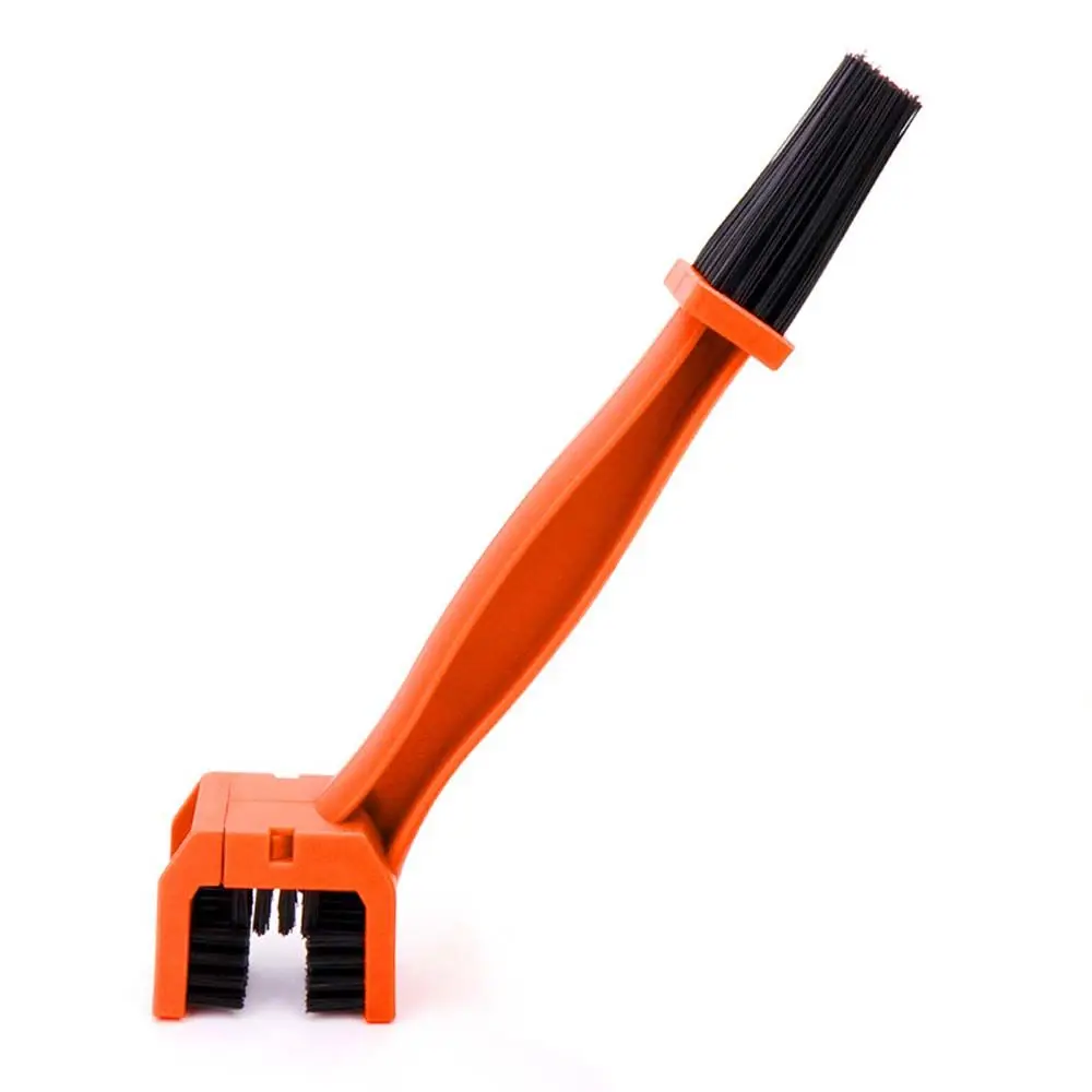 Tipo de artículo: cepillo de limpieza de cadena de bicicleta Material: ABS + Nylon Aplicación: bicicleta, cadena de motocicleta y bielas Color: azul, rojo, negro, naranja Tamaño: aproximadamente 26,8 cm Peso:. Aproximadamente 65g El paquete incluye: 1 cepillo de limpieza de cadena de bicicleta
