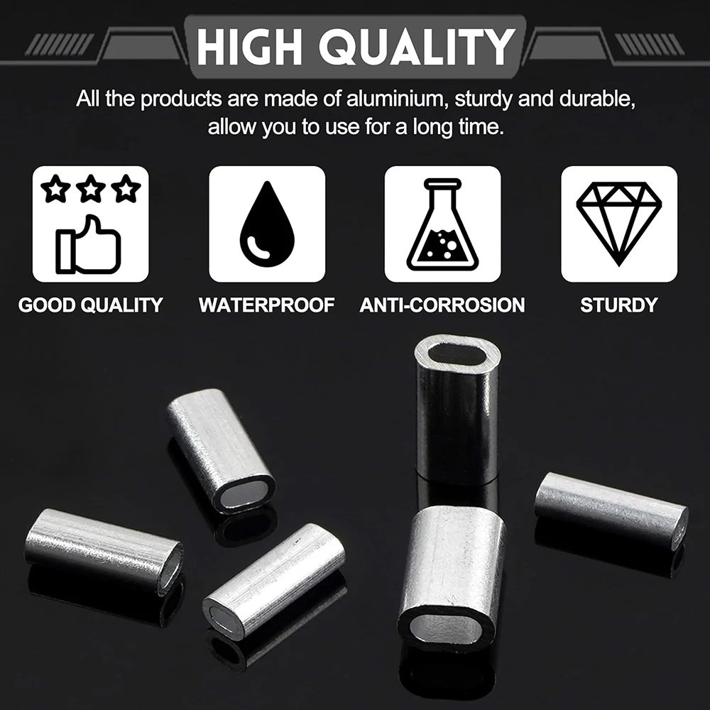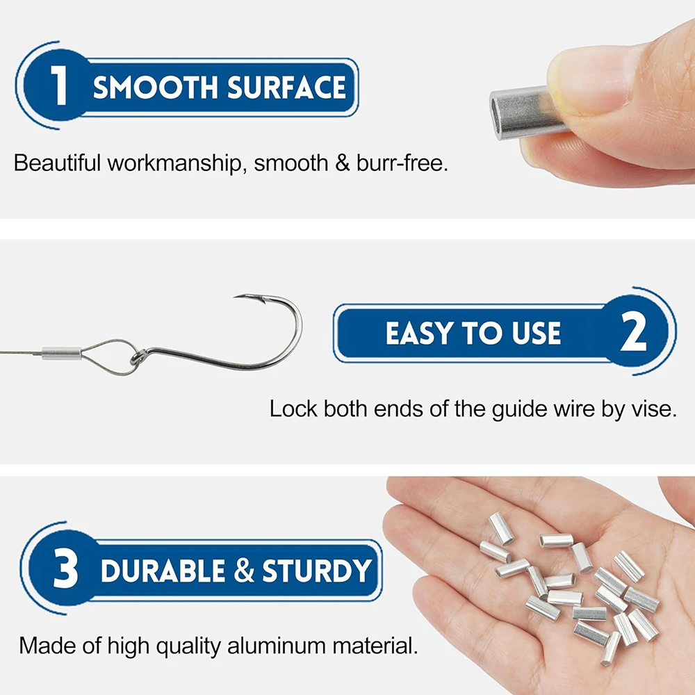 3. Simplemente bloquee ambos extremos del cable guía con un tornillo, alicates o herramientas de compresión sin esfuerzo. El diseño del orificio ovalado es fácil de engarzar con la herramienta de estampado. Superficie lisa sin rebabas, Sin bordes afilados que dañen el sedal.