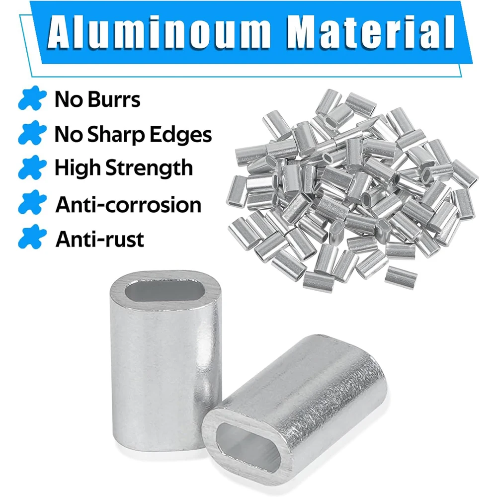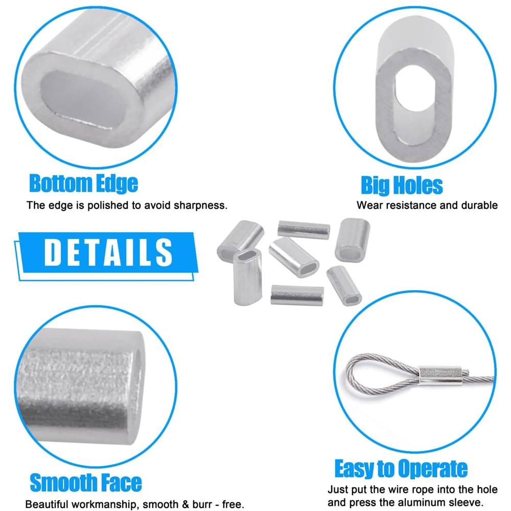 3. Las mangas de bucle de prensado de aluminio son fáciles de usar, sin esfuerzo, simplemente bloquee ambos extremos del cable guía con tornillo de banco, alicates o herramientas de prensado.