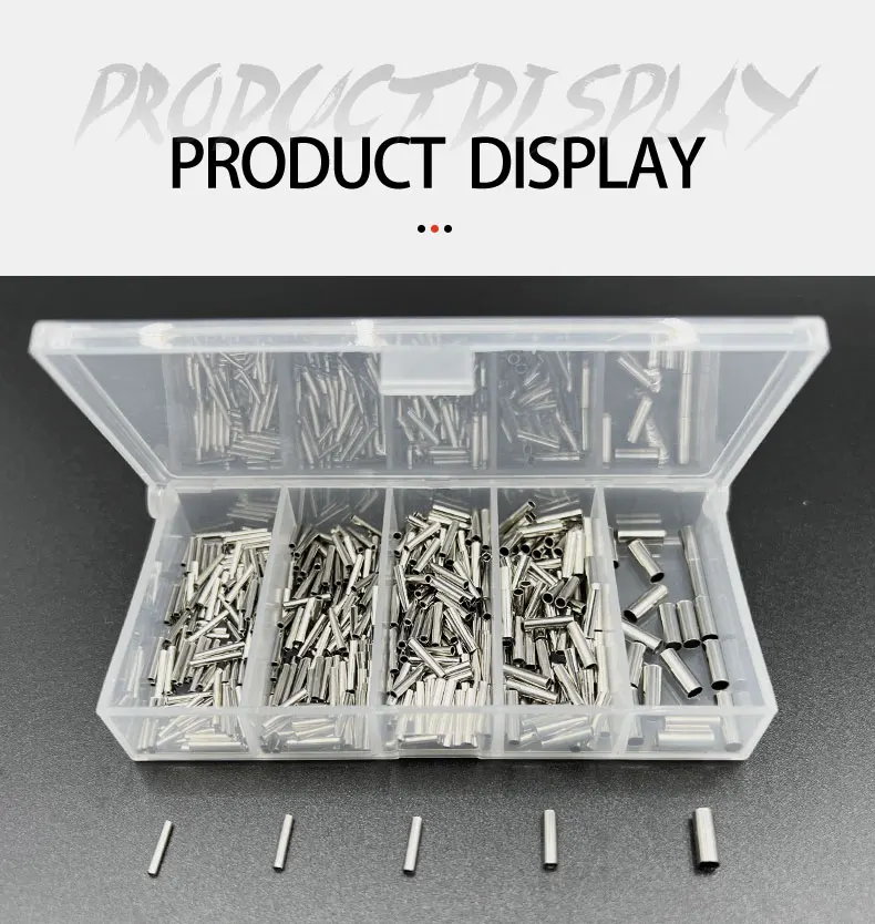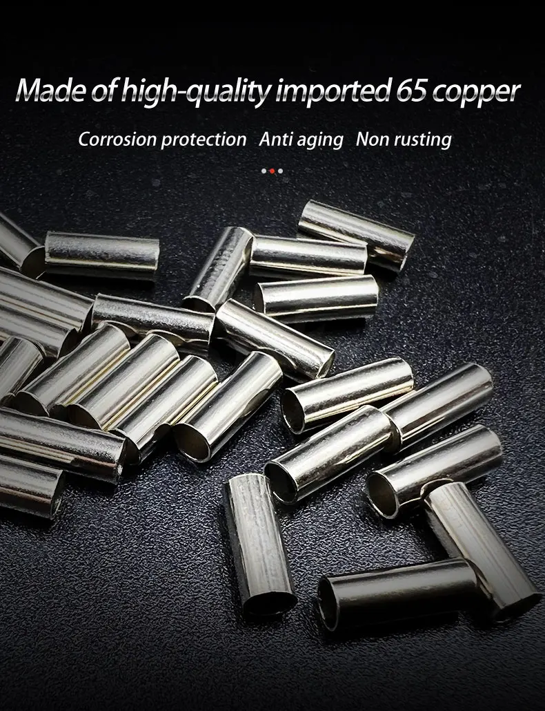 Kit de manguitos de prensado de barril individual de cobre, 600 Uds., funda de bucle de prensado de cobre, Kit de conector de tubo de cuerda de alambre de línea de pesca