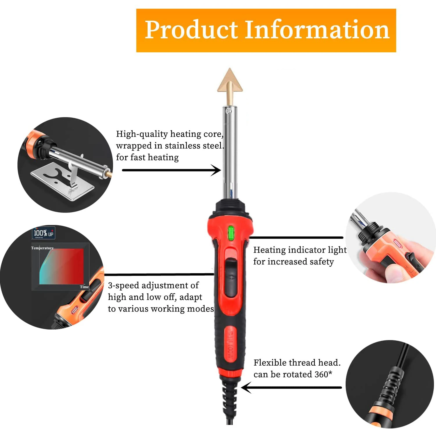 • Salida de alta potencia :Con una potencia de salida de 100W, este soldador de plástico puede manejar incluso los trabajos de soldadura más difíciles con facilidad.
