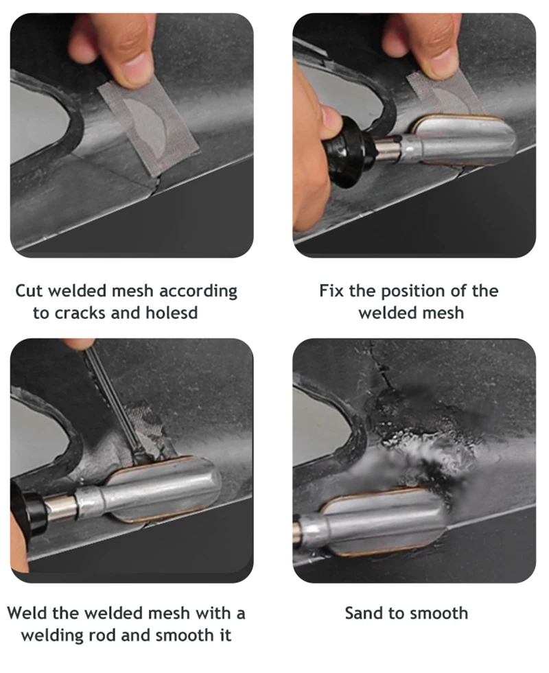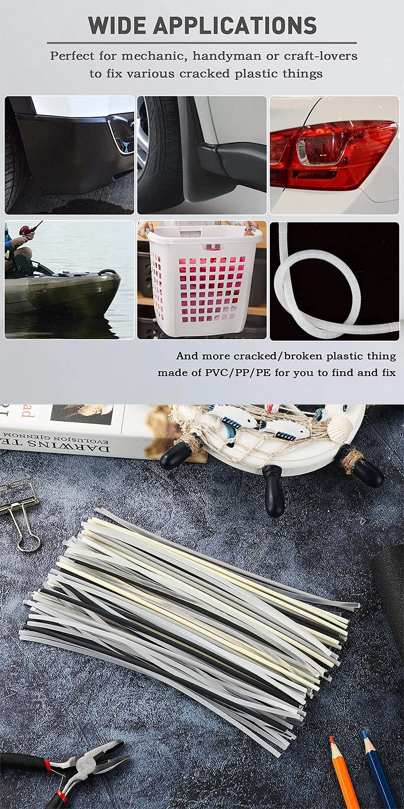 Repara al menos el 98% de los plásticos en el mercado. Perfecto para reparar: parachoques, tablero de instrumentos, soporte de lámpara, anillo de plástico, radiador, alerón, manijas, faros, alas de plástico, dispositivo de plástico para automóviles y motocicletas, etc.