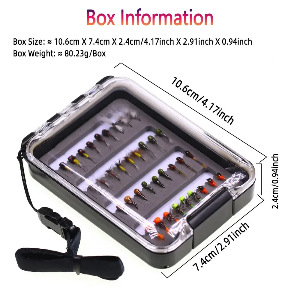 [Empaquetado con cuidado] - Caja para moscas impermeable, tapa transparente, verá las moscas de un vistazo. El tamaño de un bolsillo y hay un cordón para el cuello en la caja, será más cómodo de llevar.