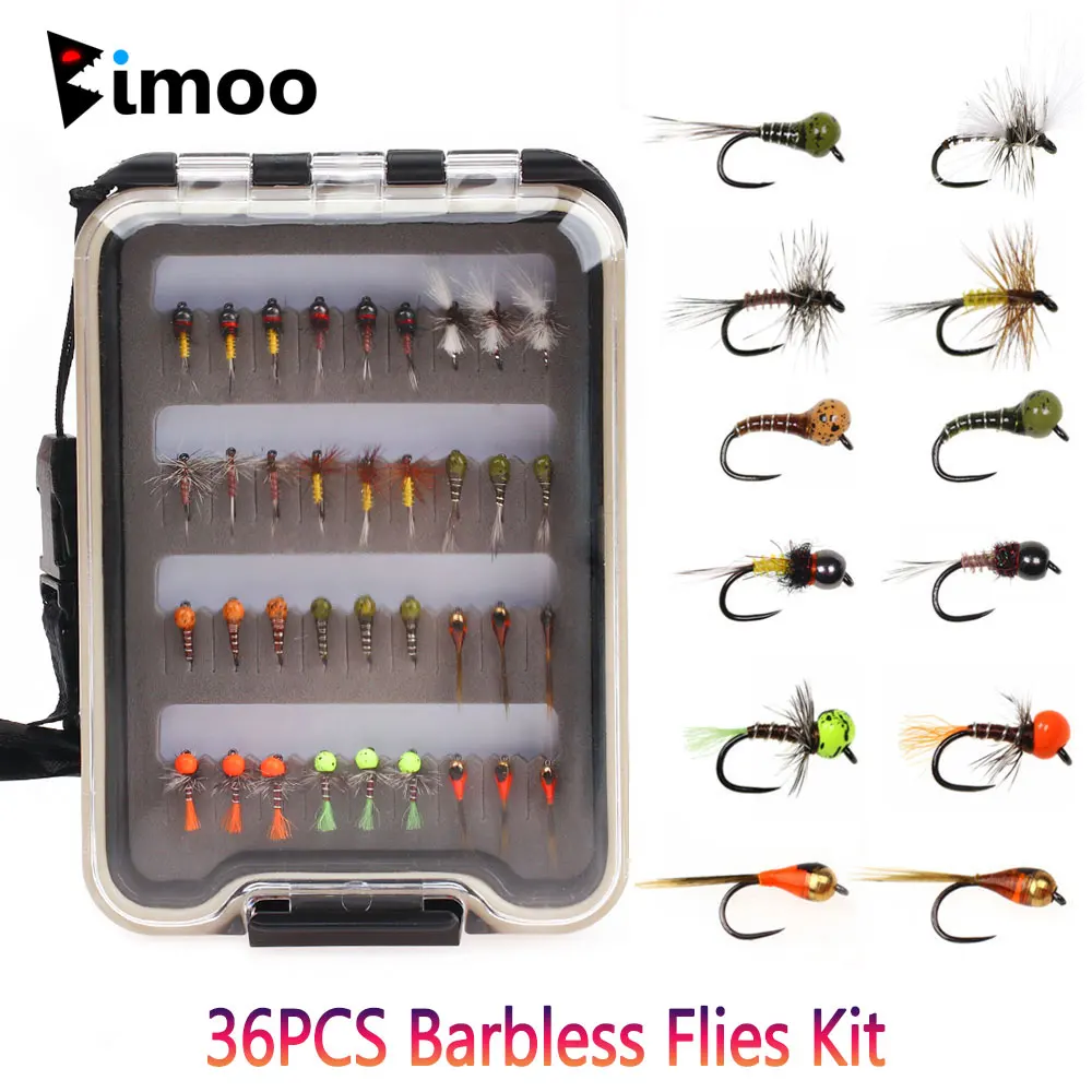 Kit de moscas de 36 Uds., paracaídas sin púas, mosca seca, cabeza de cuentas Mayfly, ninfa húmeda, offset, cabeza de cuentas de tungsteno, moscas húmedas de trucha#18#20