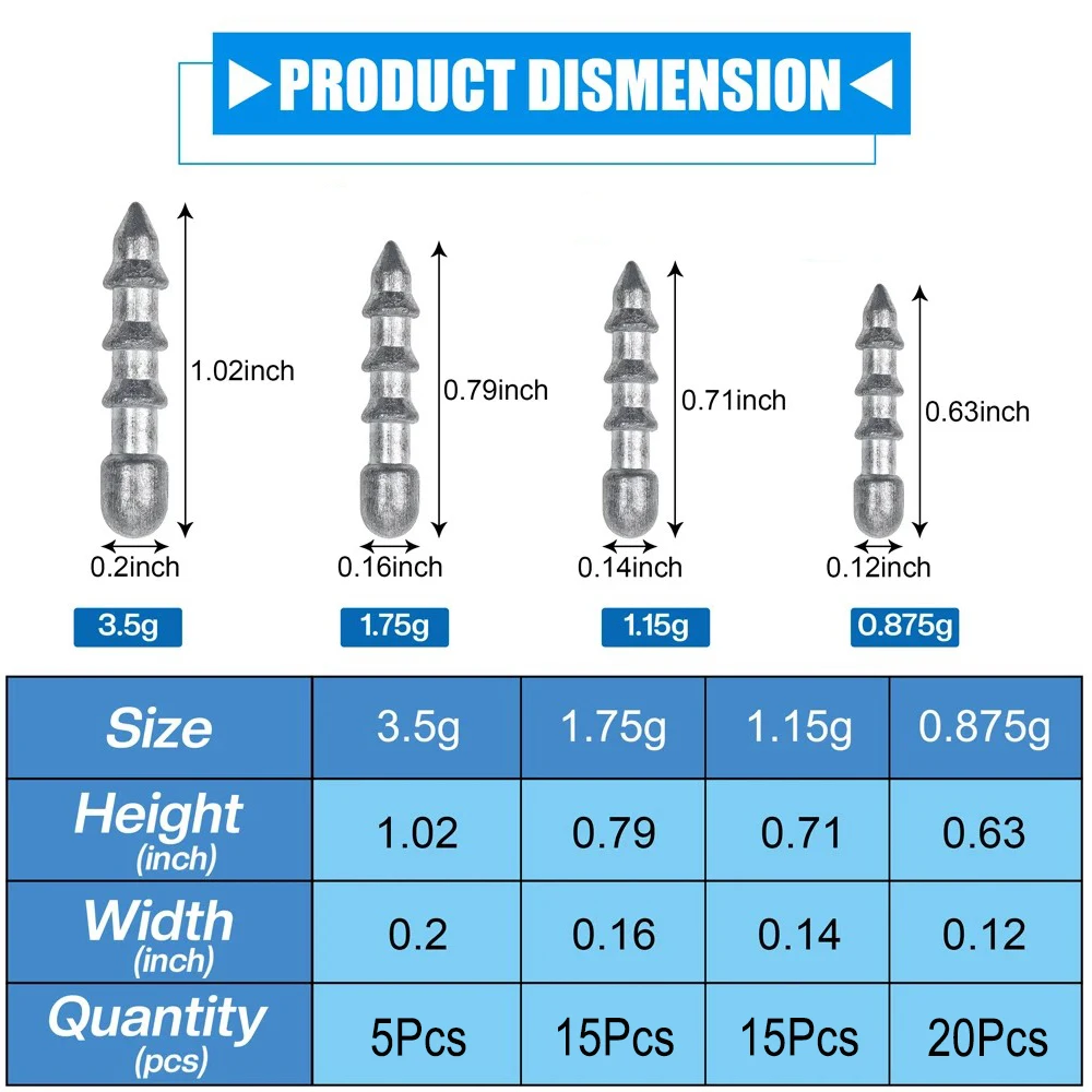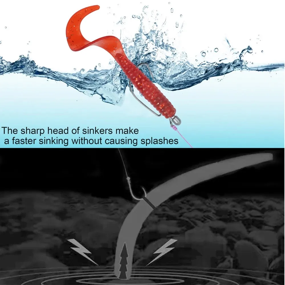 SUPERFICIE LISA: nuestros pesos de pesca son de Grado Profesional, muy fiables. La superficie lisa Puede insertar fácilmente señuelos de plástico blando de gusano para ayudarlo a atrapar más peces.