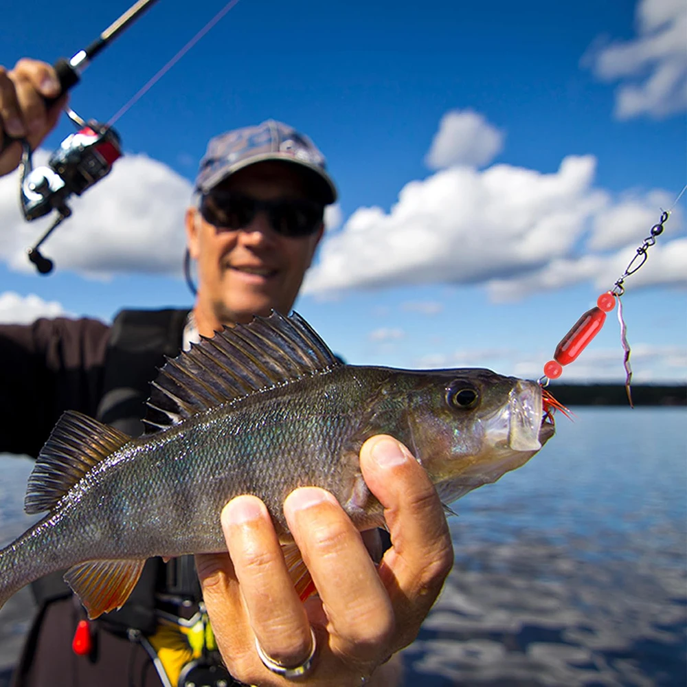 1. El kit de suministros de cebo giratorio de latón presenta una superficie colorida y diferentes patrones pintados que aumentan el atractivo de sus cebos giratorios, para atraer a más peces a la huelga.