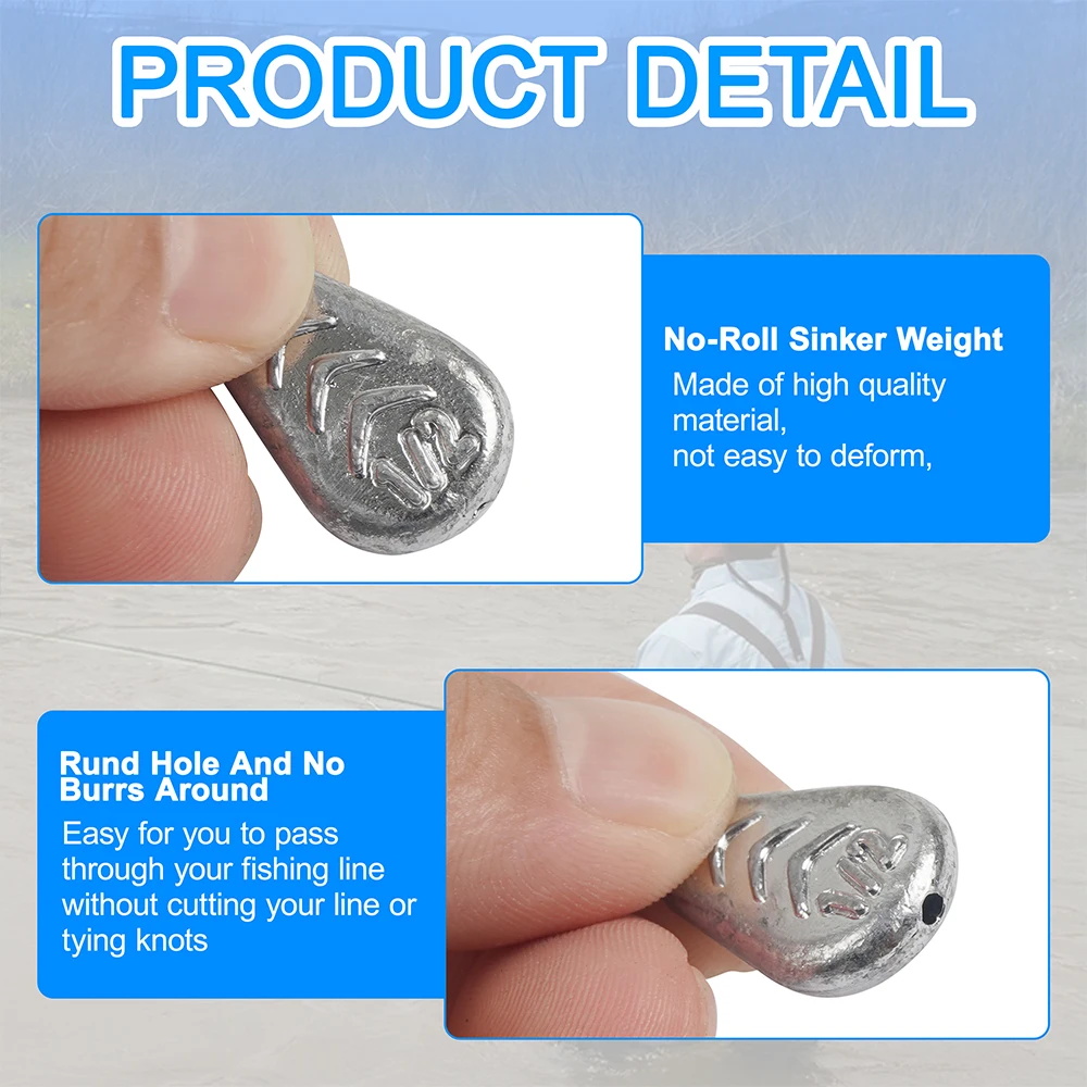 Calidad y fiabilidad: Estas plomos de pesca están hechos de materiales de plomo, que son fuertes y fiables, no se rompen ni se oxidan, con buena resistencia al desgaste, resistencia a la corrosión; Perfecto para agua dulce y salada