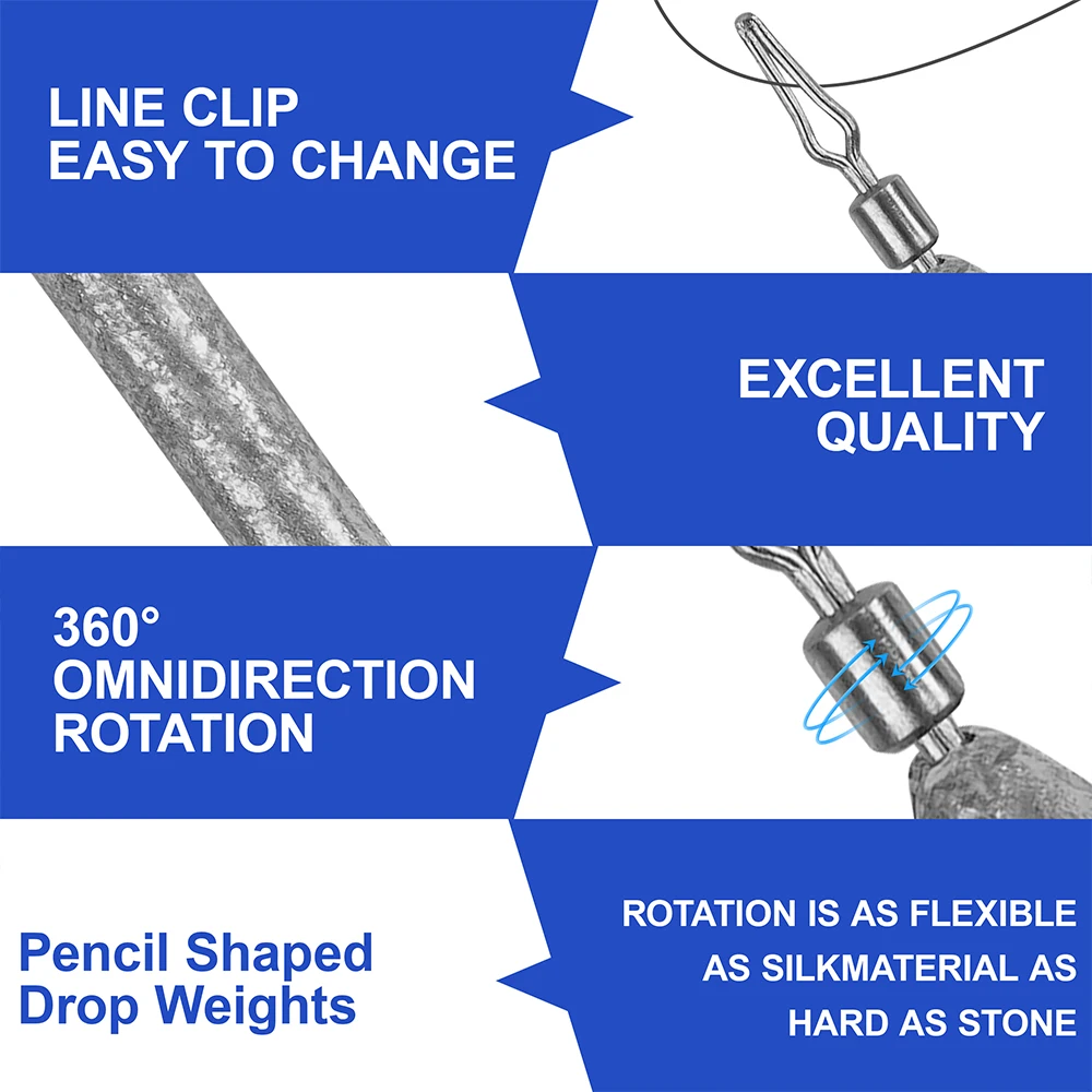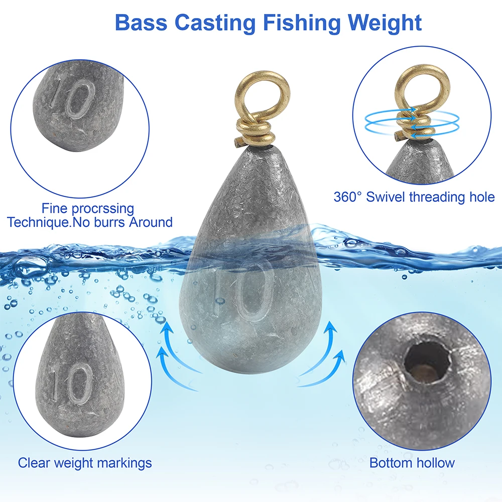 Fácil de usar: reduce la fricción con una superficie lisa y pulida bajo el agua, minimizando así el efecto en la acción de natación de su señuelo; características con anillo giratorio de 360 ° y diseño extraíble, permite a los pescadores cambiar fácilmente el peso y ahorrar más tiempo