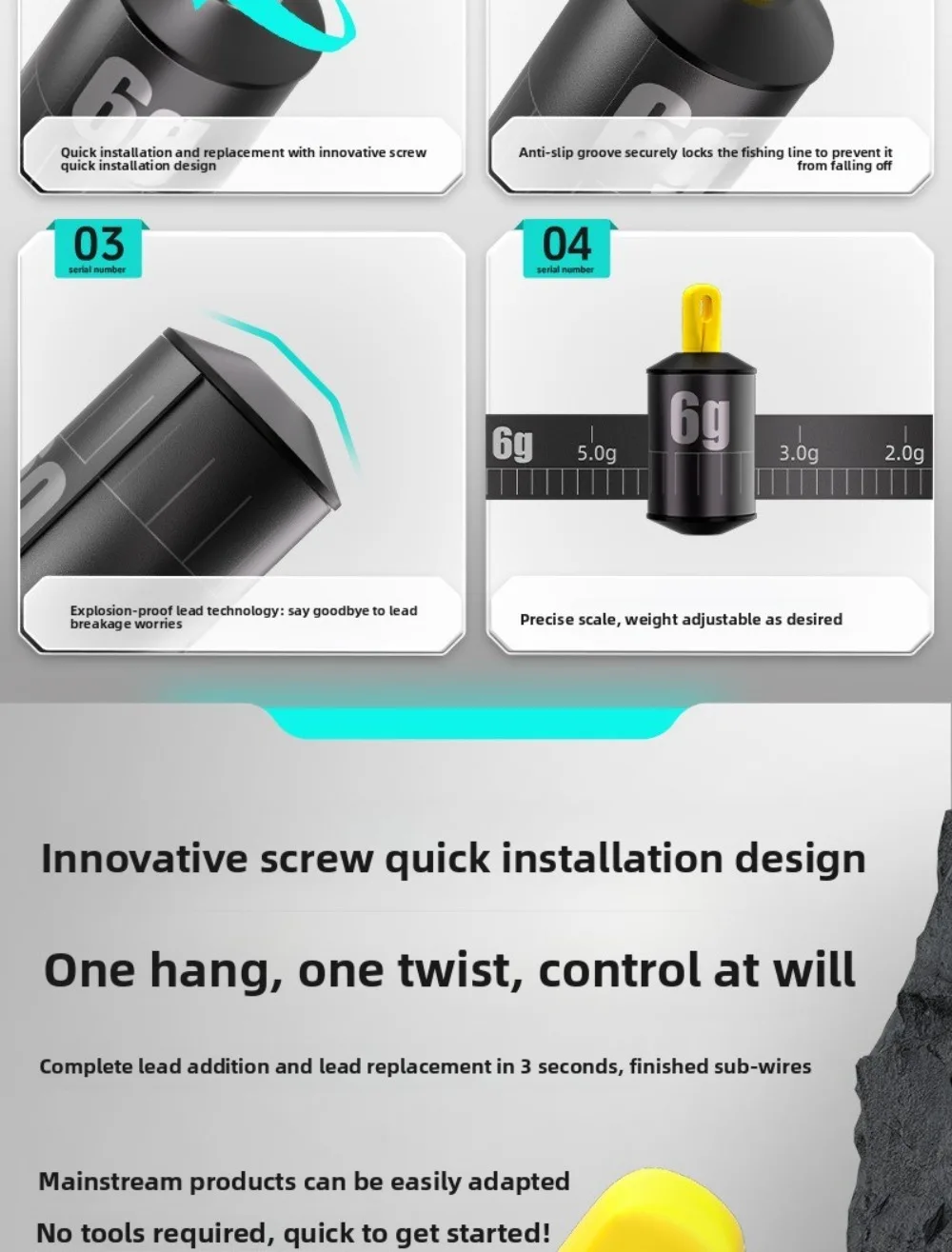 -Ajuste rápido para competiciones de pesca: Diseñado específicamente para competiciones de pesca, nuestro plomo de ajuste rápido de peso ofrece un ajuste rápido y fácil.Su diseño multifuncional le permite adaptarse a diferentes condiciones y técnicas de pesca, brindándole una ventaja competitiva.Llegue a su área de pesca objetivo de manera eficiente con nuestras plomos.