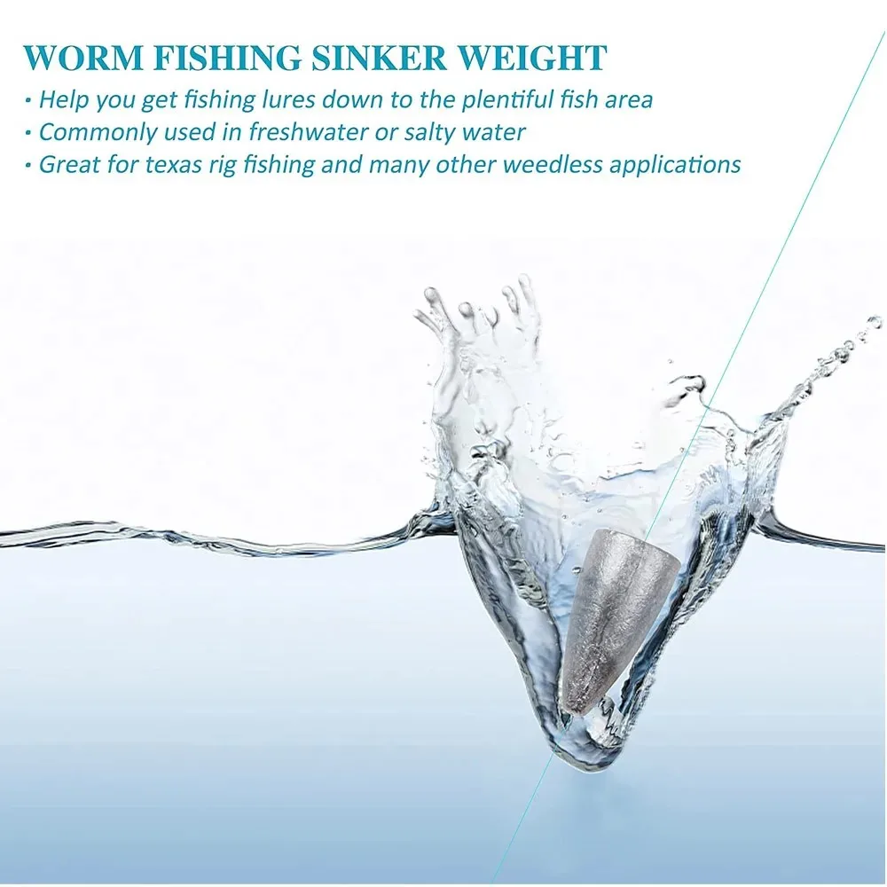 PESOS DE PESCA PREMIUM: nuestras plomos de pesca de gusanos tienen un extremo estrecho redondeado para evitar enganches, la base cóncava se ajusta firmemente a la nariz de gusanos. El diseño aerodinámico podría reducir salpicaduras, causar menos olas y casi silencioso.