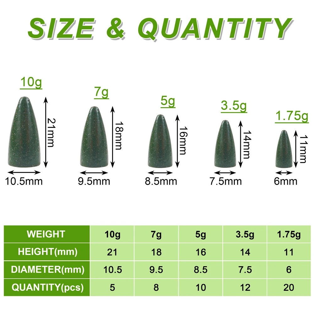 3. Los pesos de pesca en forma de bala son altamente efectivos para un hundimiento rápido con una resistencia mínima, descendiendo rápidamente a la ubicación submarina deseada.