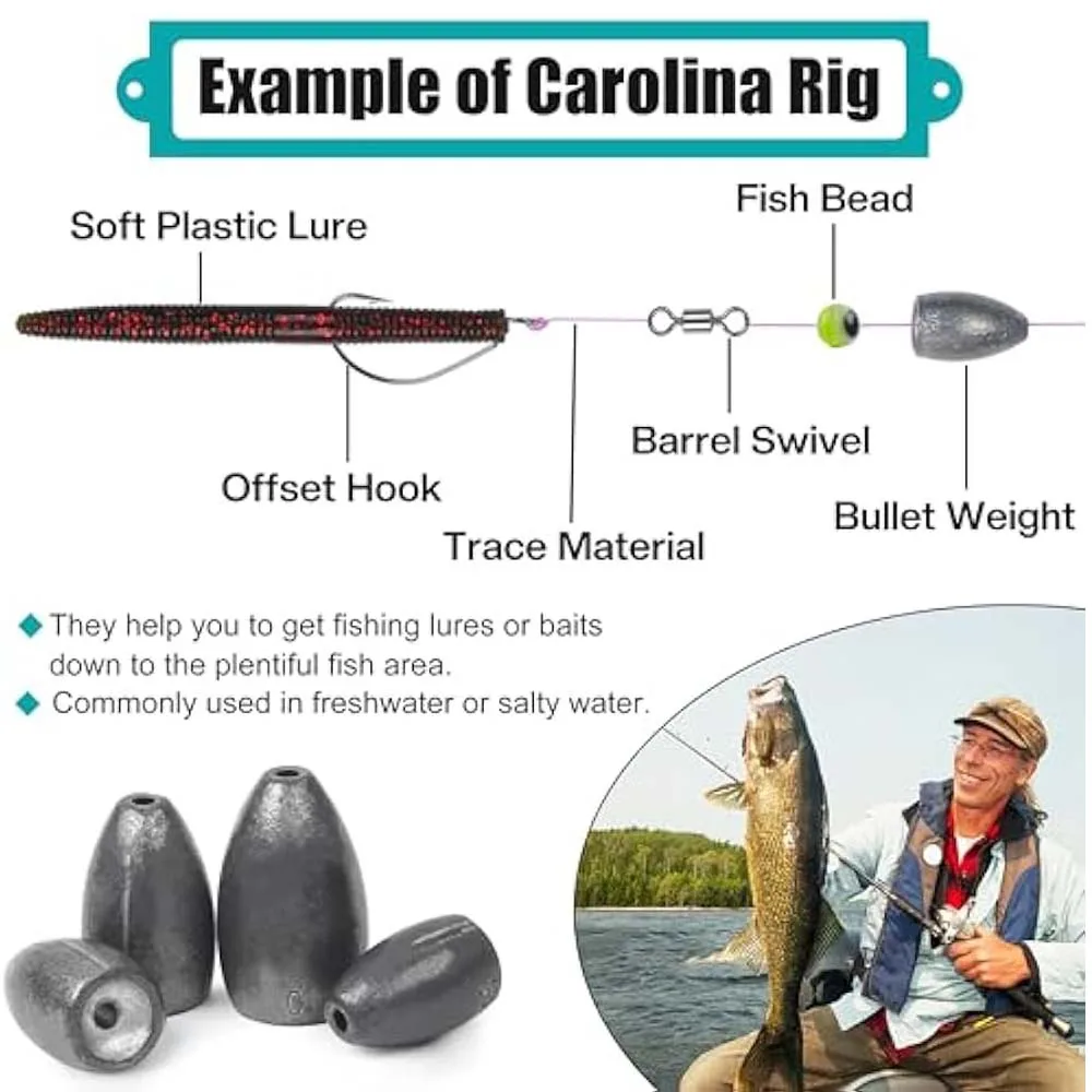 2.Los plomos de pesca tipo bala son perfectos para gusanos blandos, larvas e incluso cebos naturales a través de malezas.Ideal para pesca de lubina, aparejo Texas, aparejo Carolina en accesorios de aparejos de pesca de agua salada/dulce.