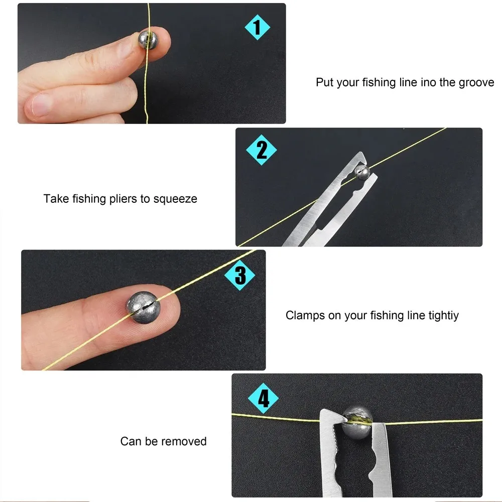 3.Apriete las pesas de pesca en el hilo de pescar con los dedos o con un par de alicates y retírelo para uso múltiple.