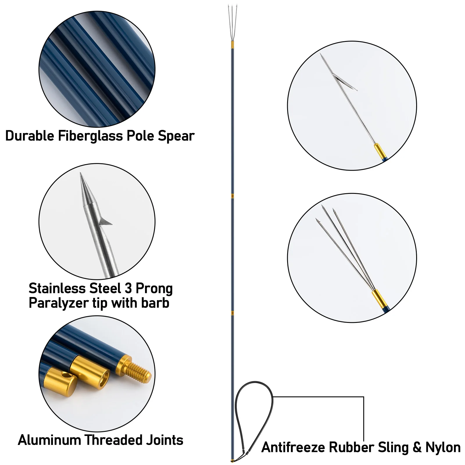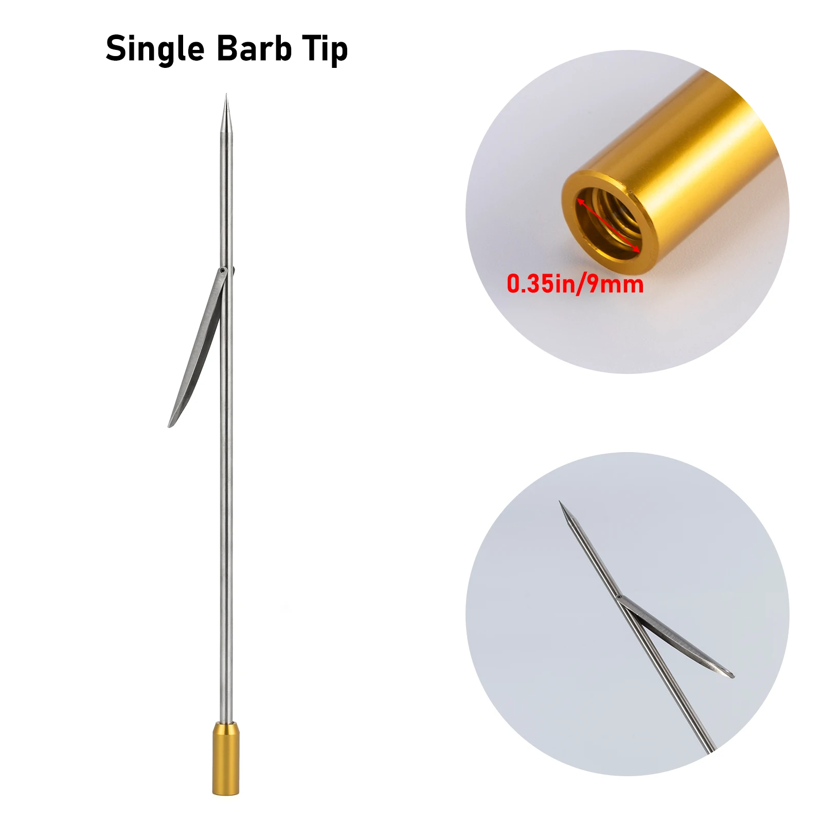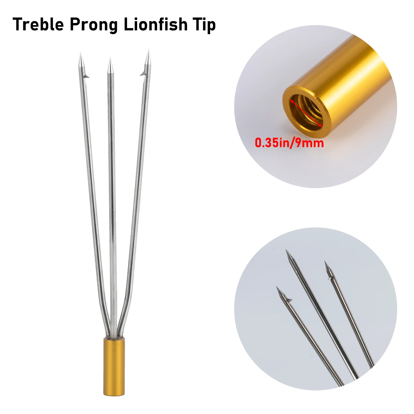 2. Punta de una sola lengüeta (12,6 '') , punta de pez león de Punta triple ('' 9,17) y Punta paralizadora de Punta triple (9,3 '') , todos hechos de acero inoxidable resistente a la corrosión, se pueden reemplazar fácilmente, adecuados para capturar cualquier especie de pez.