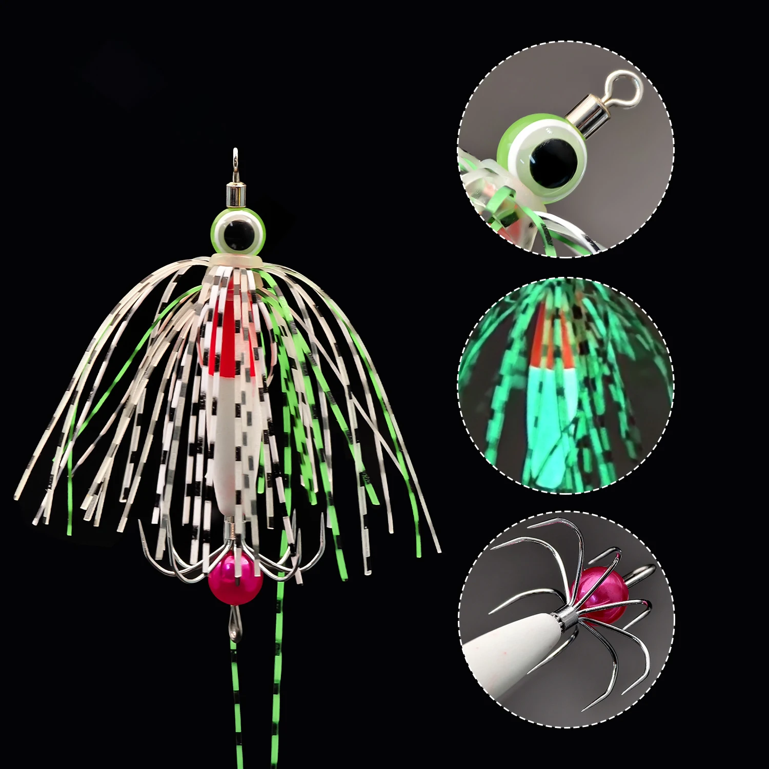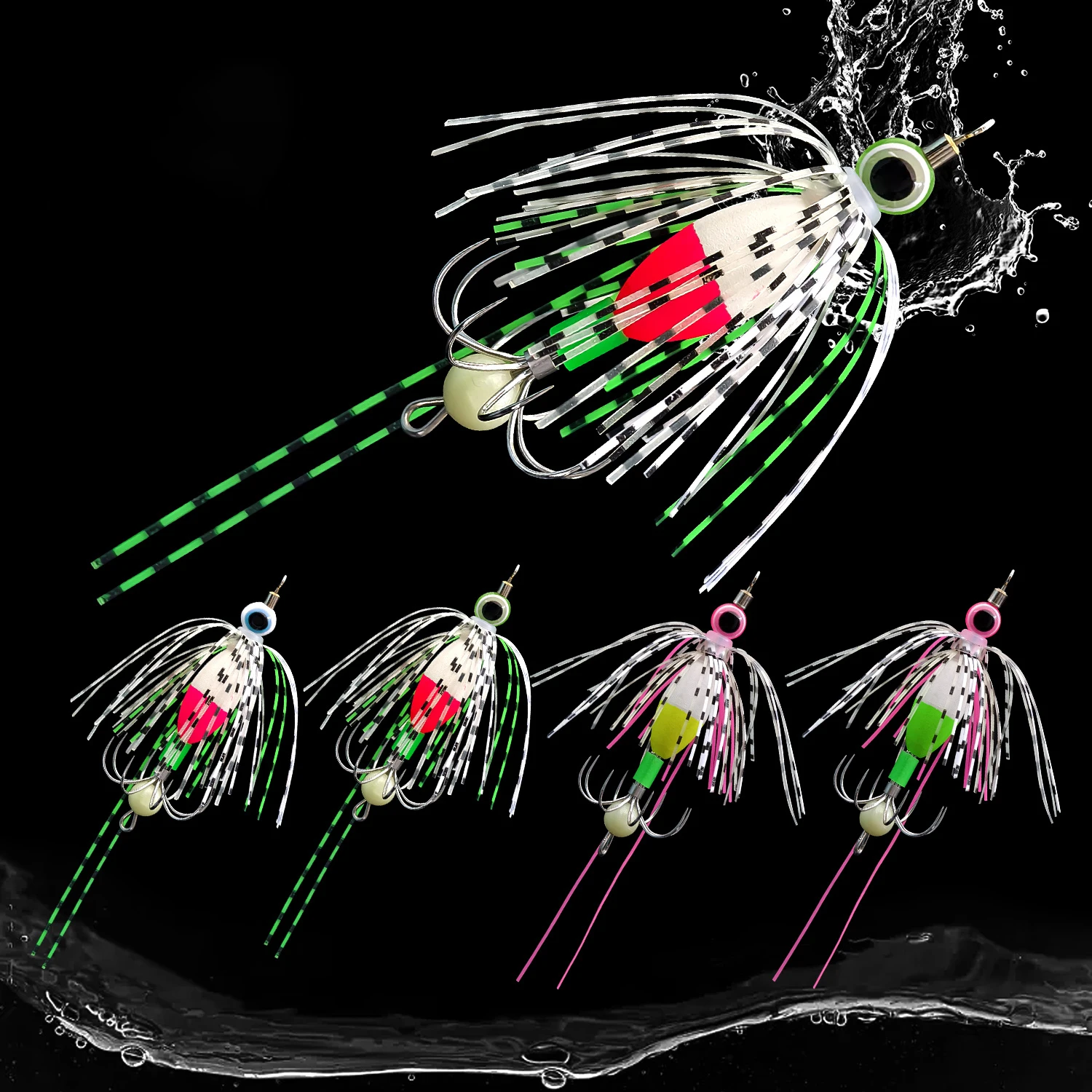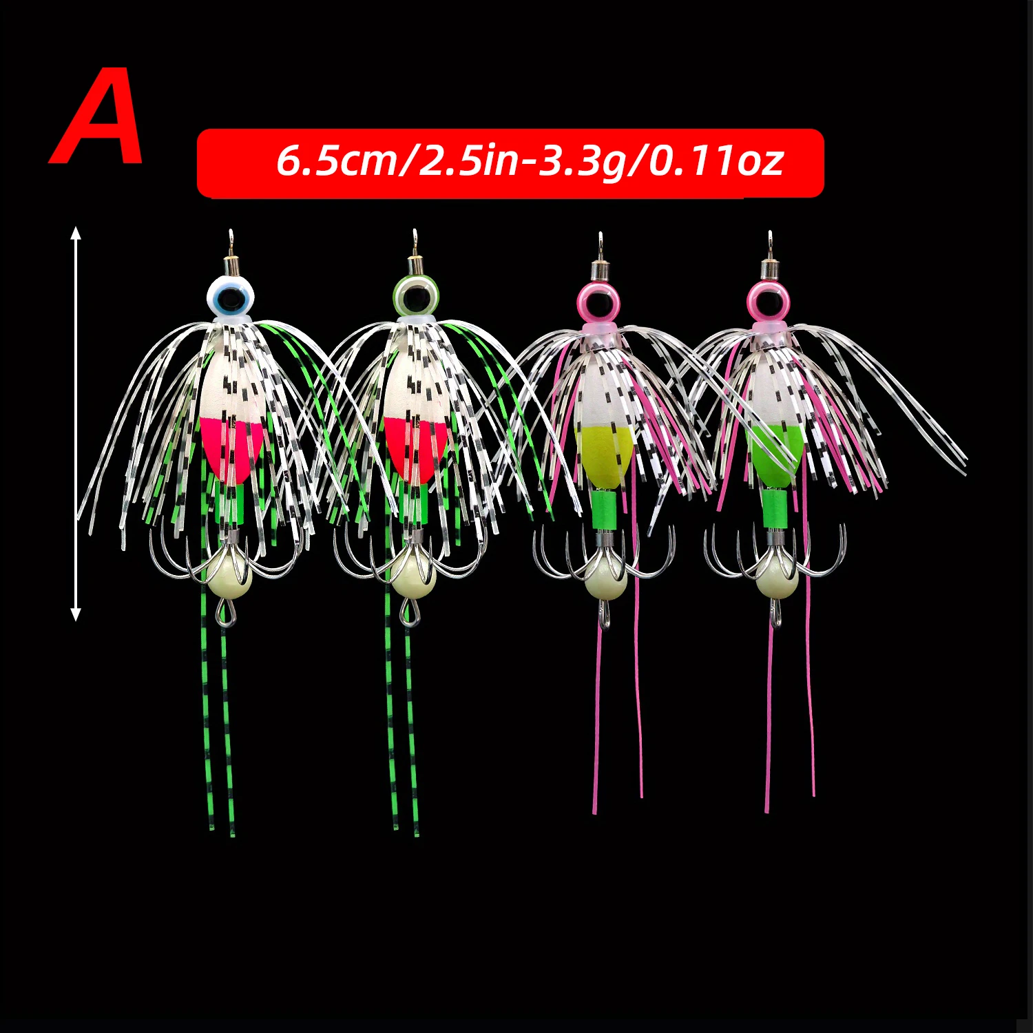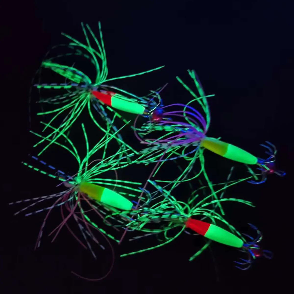 Kit de plantilla de calamar que brilla en la oscuridad, cebos artificiales luminosos con ganchos de acero inoxidable y cuerpo de PVC, incluye caja de aparejos, 4 Uds.