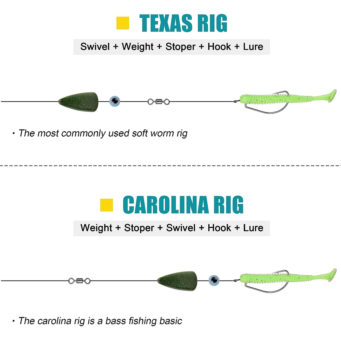 3. Imprescindible en la pesca de lubina para hacer aparejos de Texas, aparejos de Carolina y otros aparejos con señuelos blandos. Estos pesos de gusanos son ideales para la pesca de agua dulce y salada.