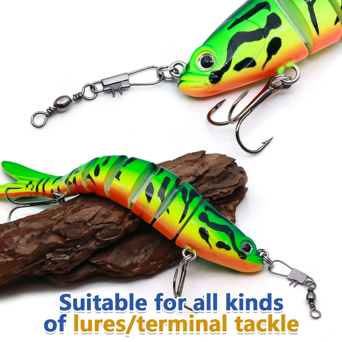 Suave - 360° El mosquetón de pesca con rotación de alta velocidad gira, imágenes que su señuelo de pesca nade como peces reales.Atacar más peces sin torcer el hilo de pescar, no daña el hilo de pescar y es anti-bobinado.