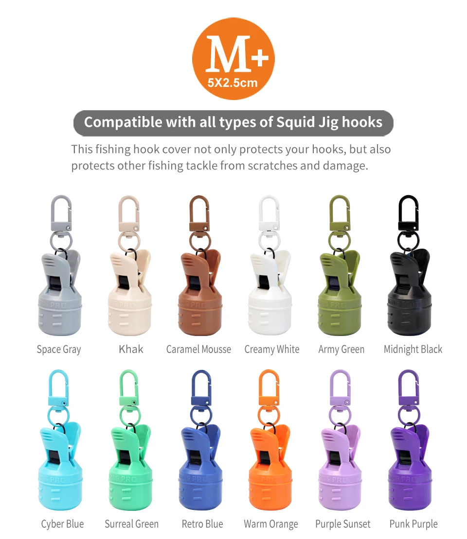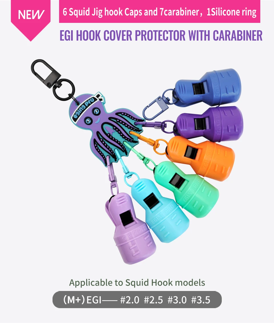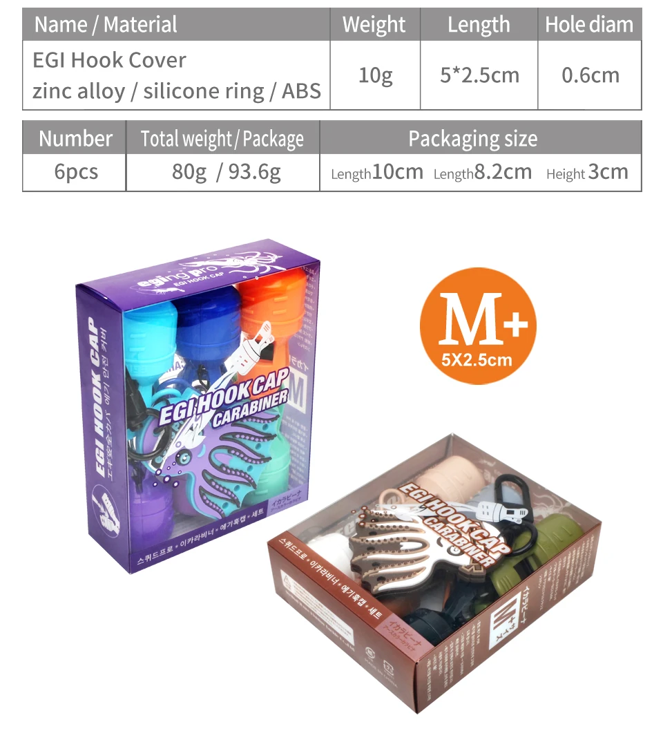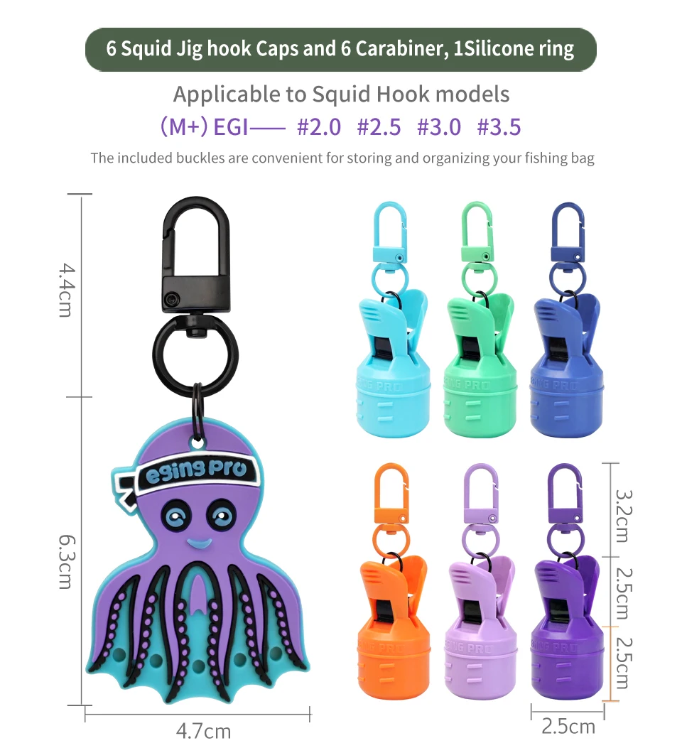 Kit Protector de cebo de plantilla de calamar M + 6 uds Webfoot pulpo Egi ganchos cubierta sepia paraguas señuelo tapa con mosquetón accesorios de mar