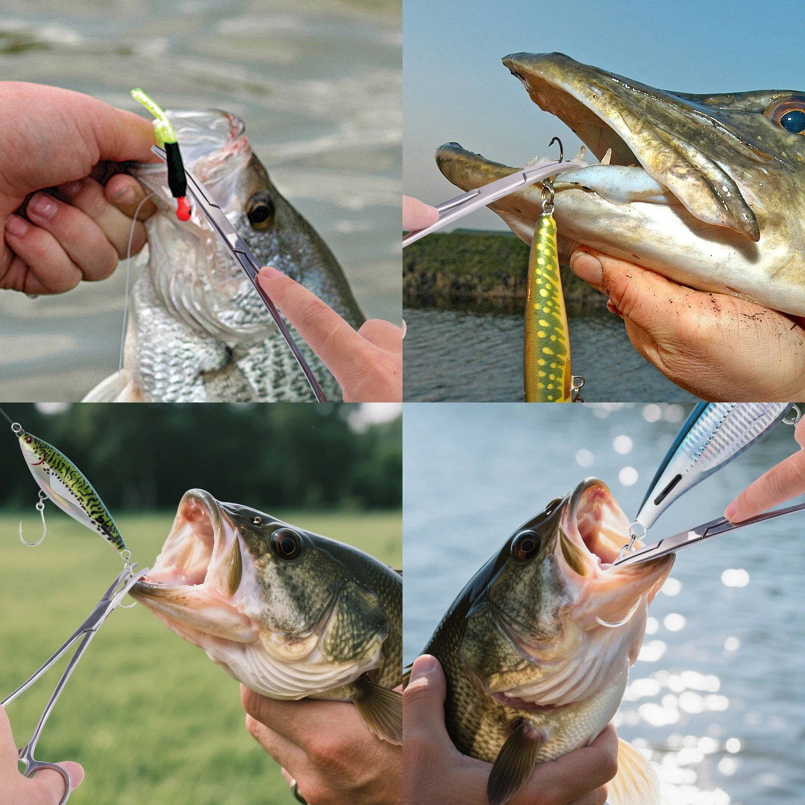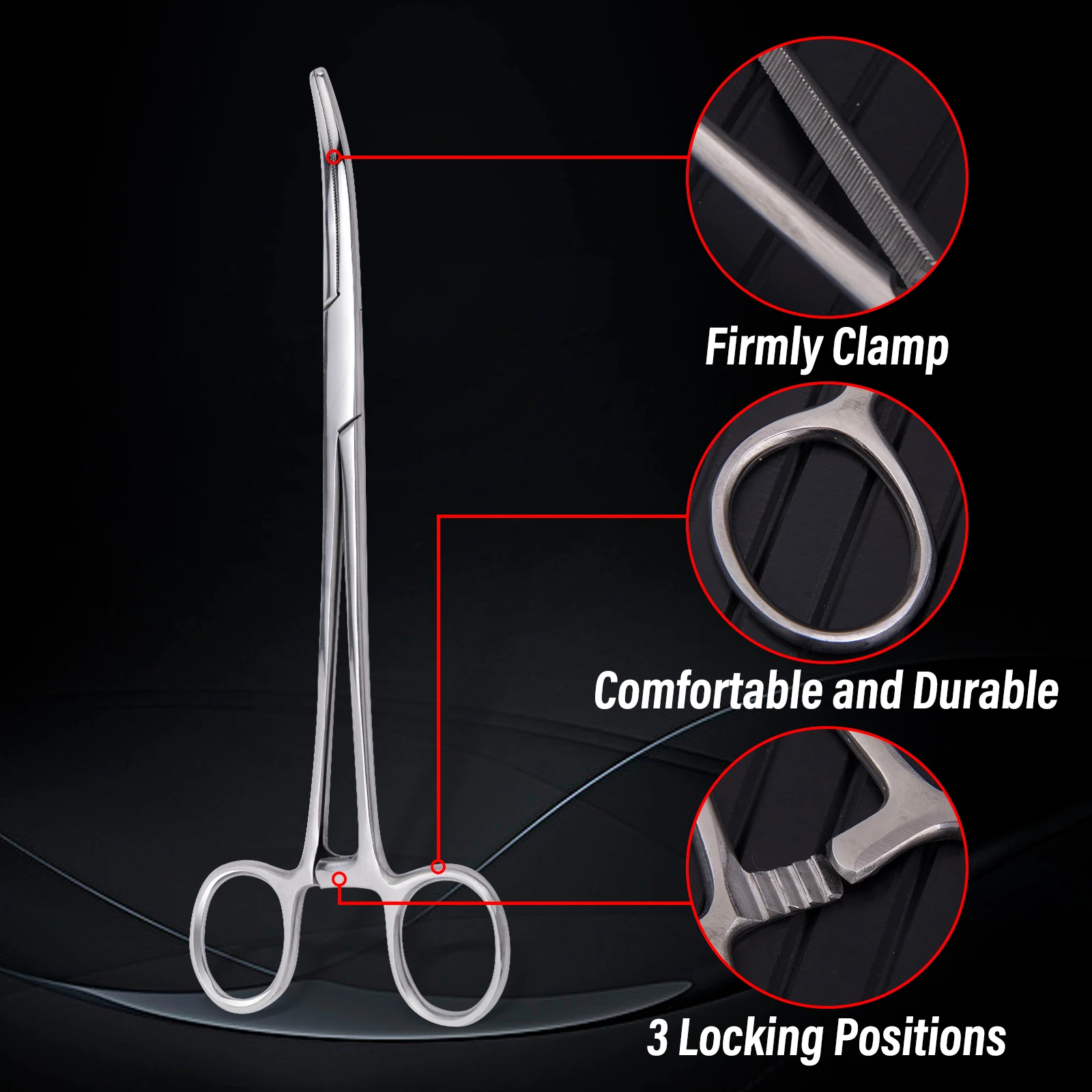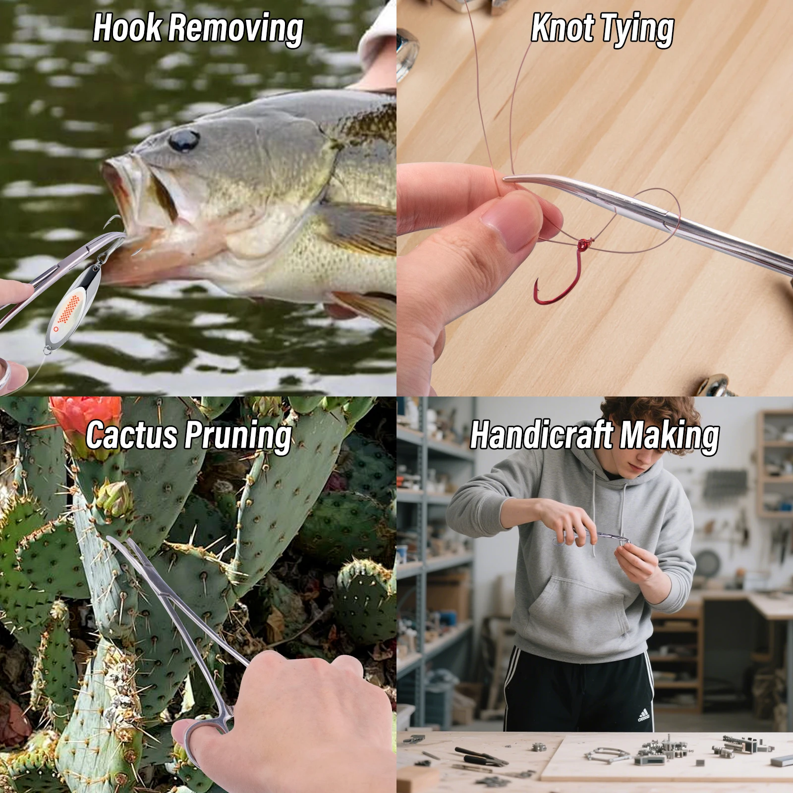 Diseño antideslizante: las mordazas dentadas proporcionan un agarre firme durante la extracción del gancho y la atadura de nudos.El trinquete de bloqueo de 3 posiciones permite una presión de sujeción ajustable para retirarlos y atar nudos de forma segura.