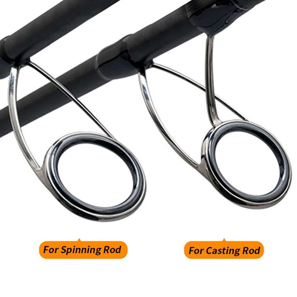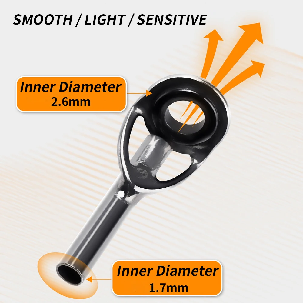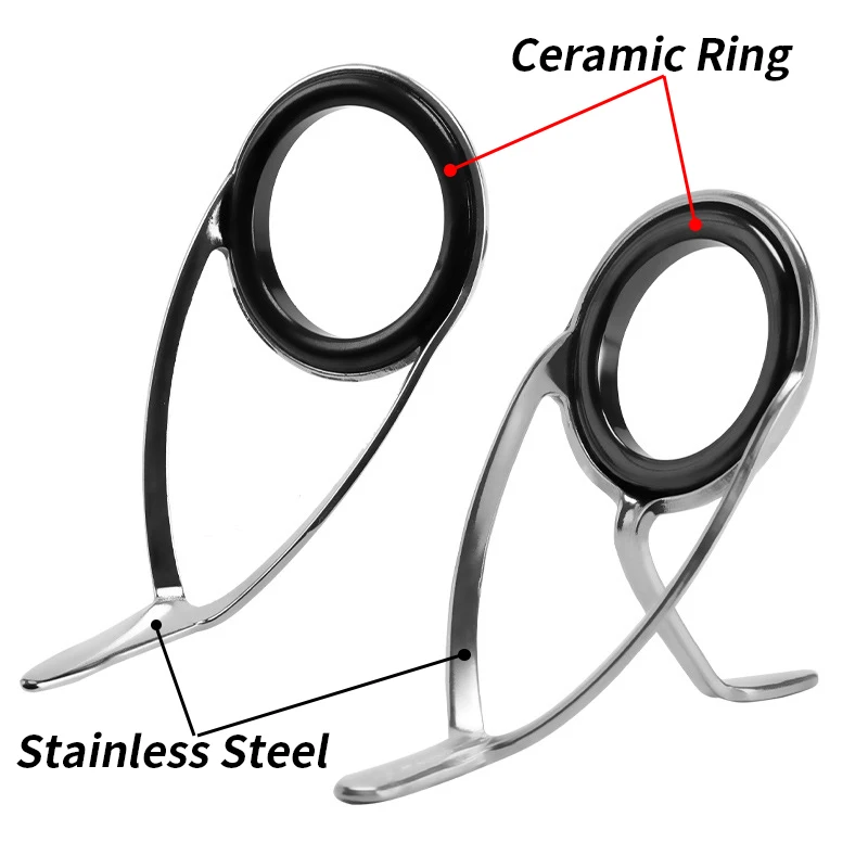 1.GUÍA DE VARILLA FUERTE SENSIBLE LIGERA: Con marco de acero inoxidable y anillo de cerámica resistente al desgaste, resistente y duradero.Hace que la luz de su caña de pescar sea sensible y fuerte.