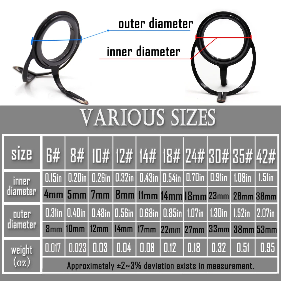 Anillos 10 piezas de accesorios de pesca de agua dulce y agua salada caña de construcción 6 # ~ 42 #