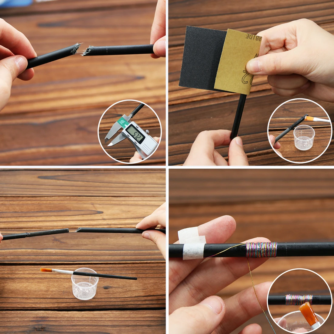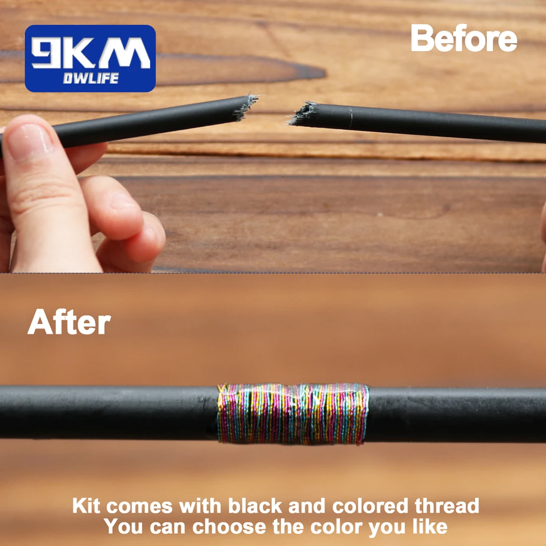 【How to Repair】Just need you to insert the glue-coated carbon stick into the broken fishing rod first, wrap the repaired part with thread and apply epoxy adhesive coating, wait for it to dry. (For details, please watch the video we shot)