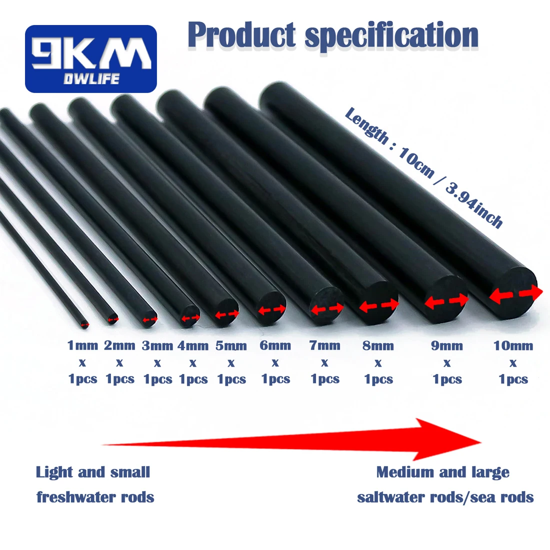 【High Strength Carbon Fiber Rods】We provide solid carbon sticks in 10 sizes (diameter: 1mm~10mm). Not only suitable for small and medium light freshwater fishing rods, but also suitable for larger saltwater/sea rods. One set satisfies you for at least 10 repairs.