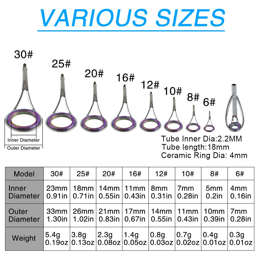 3.Combinación de 9 tamaños, guías esenciales para cañas de pescar en el mar al aire libre, accesorios de reparación.