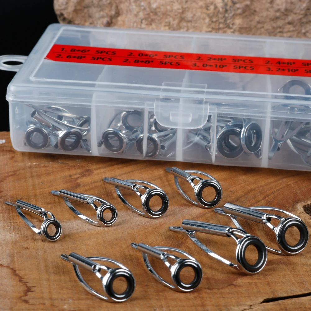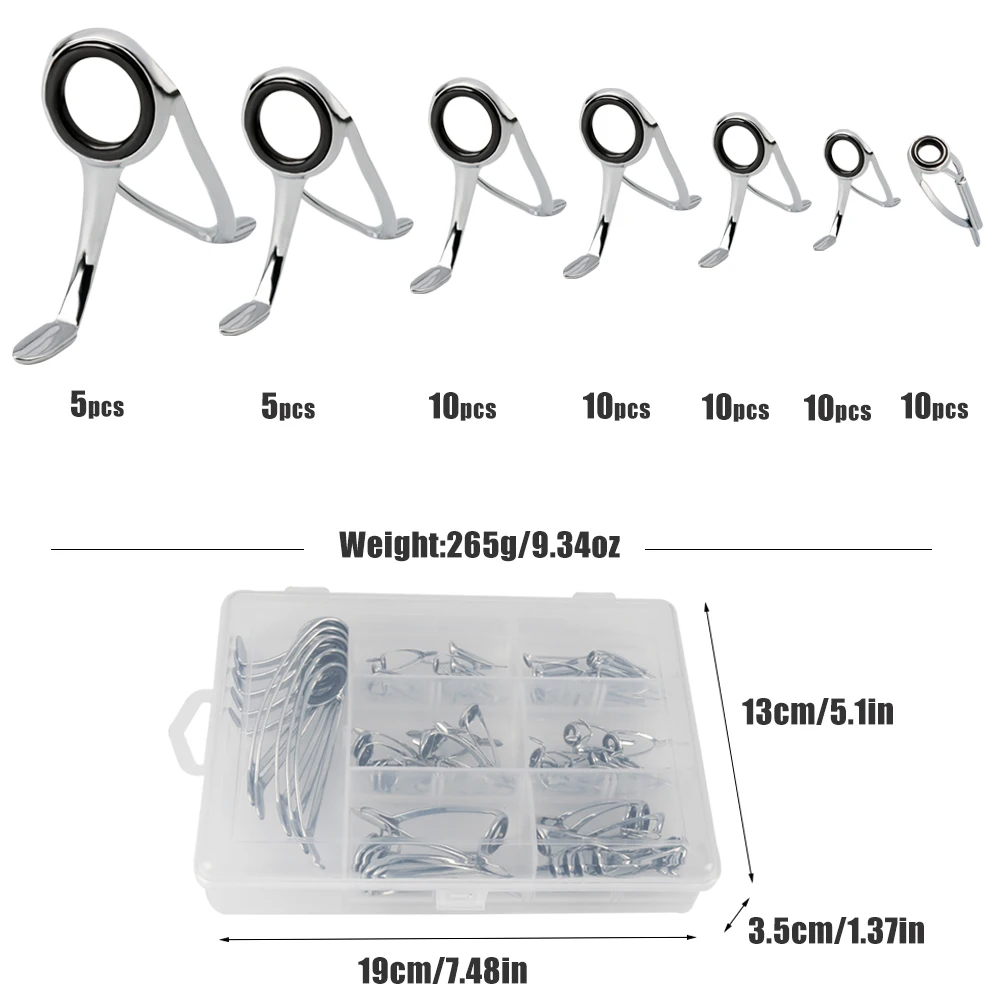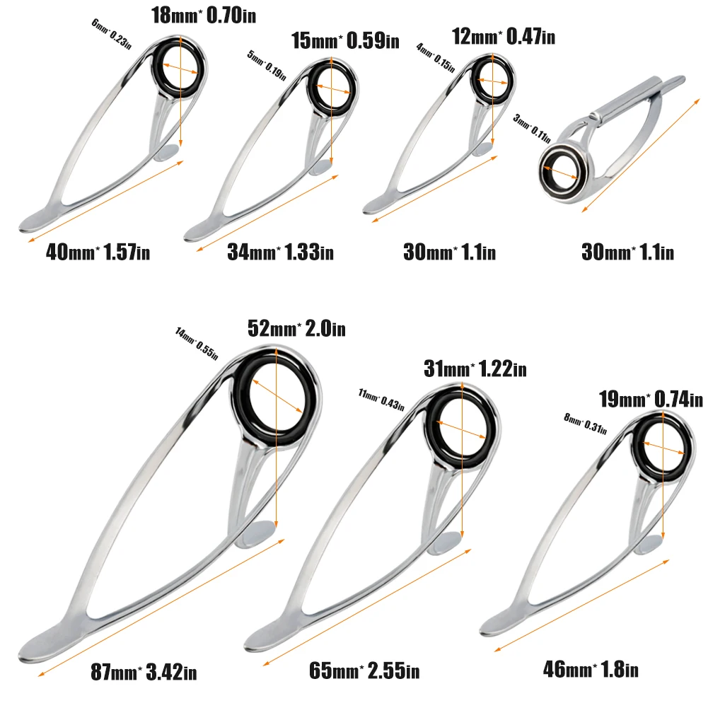 Juego de puntas de guías para caña de pescar, Kit de reparación, anillos para ojos DIY, marcos de acero inoxidable, puntas, Kit de reparación de guías para caña de pescar superiorCaracterística: