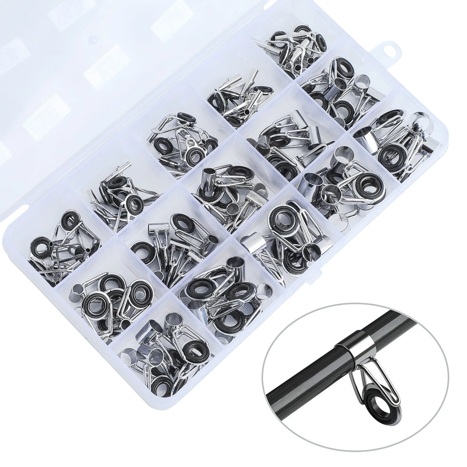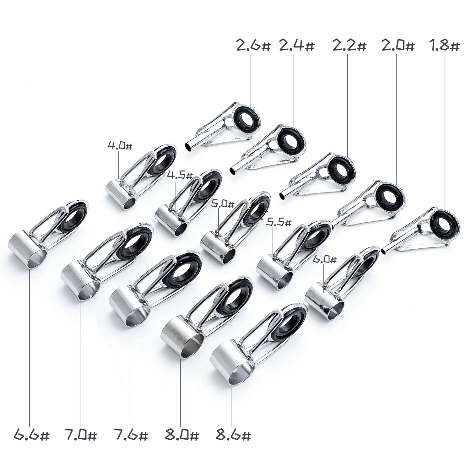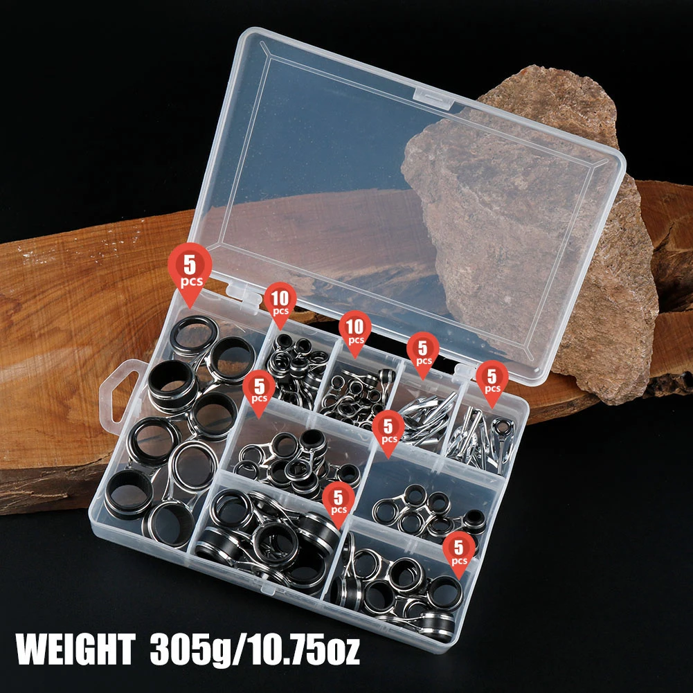 Juego de puntas de guías para caña de pescar, Kit de reparación, anillos para ojos DIY, marcos de acero inoxidable, puntas, Kit de reparación de guías para caña de pescar superiorCaracterística: