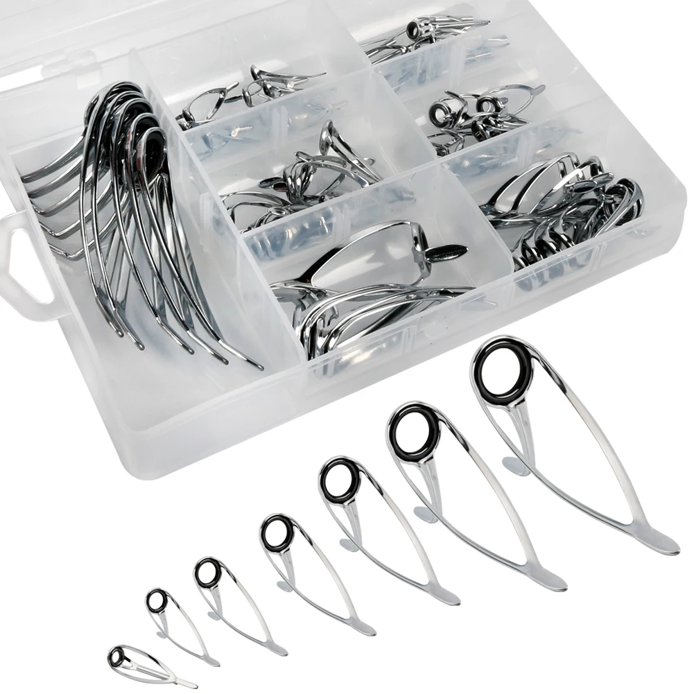 Juego de puntas de guías para caña de pescar, Kit de reparación, anillos para ojos DIY, marcos de acero inoxidable, puntas, Kit de reparación de guías para caña de pescar superiorCaracterística: