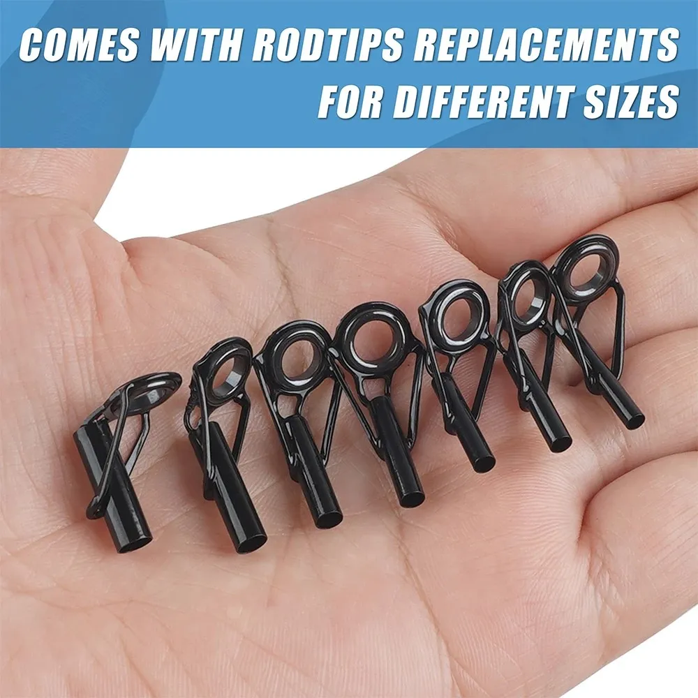 【Aplicación】 El kit de reparación para los anillos de la punta de la caña es adecuado para cañas de pescar con señuelos, cañas de pescar telescópicas y la mayoría de las cañas de pescar y es perfecto para la pesca en agua salada y la pesca con mosca.