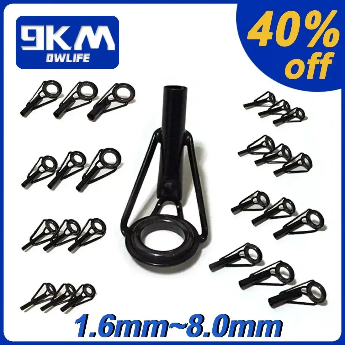 9KM DWLIFE Rod Tip Repair Kit: The fishing rod tips are made of stainless steel frame with ceramic ring, available in a total of 24 sizes, to meet the various types of fishing rods owned by professional anglers.Both freshwater and saltwater/sea fishing are available.