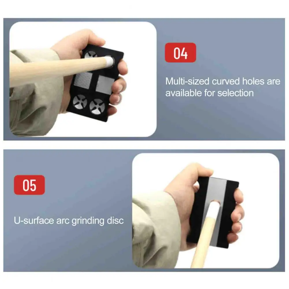 U-Side Curved Design: The unique U-side curved grinding sheet meticulously smooths out uneven areas on cue tips, allowing for personalized curvature adjustments for enhanced gameplay comfort.