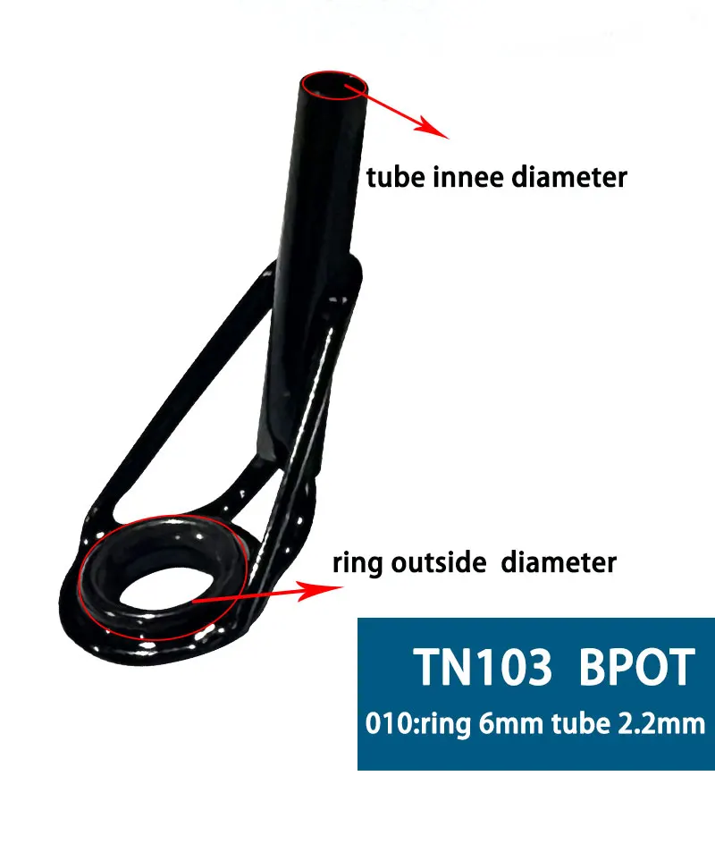 Kit de reparación para pesca, accesorios de repuesto, TN103, 10 piezas, Fuji BPOT, Punta Negra brillante, guía superior 6 #-2,2