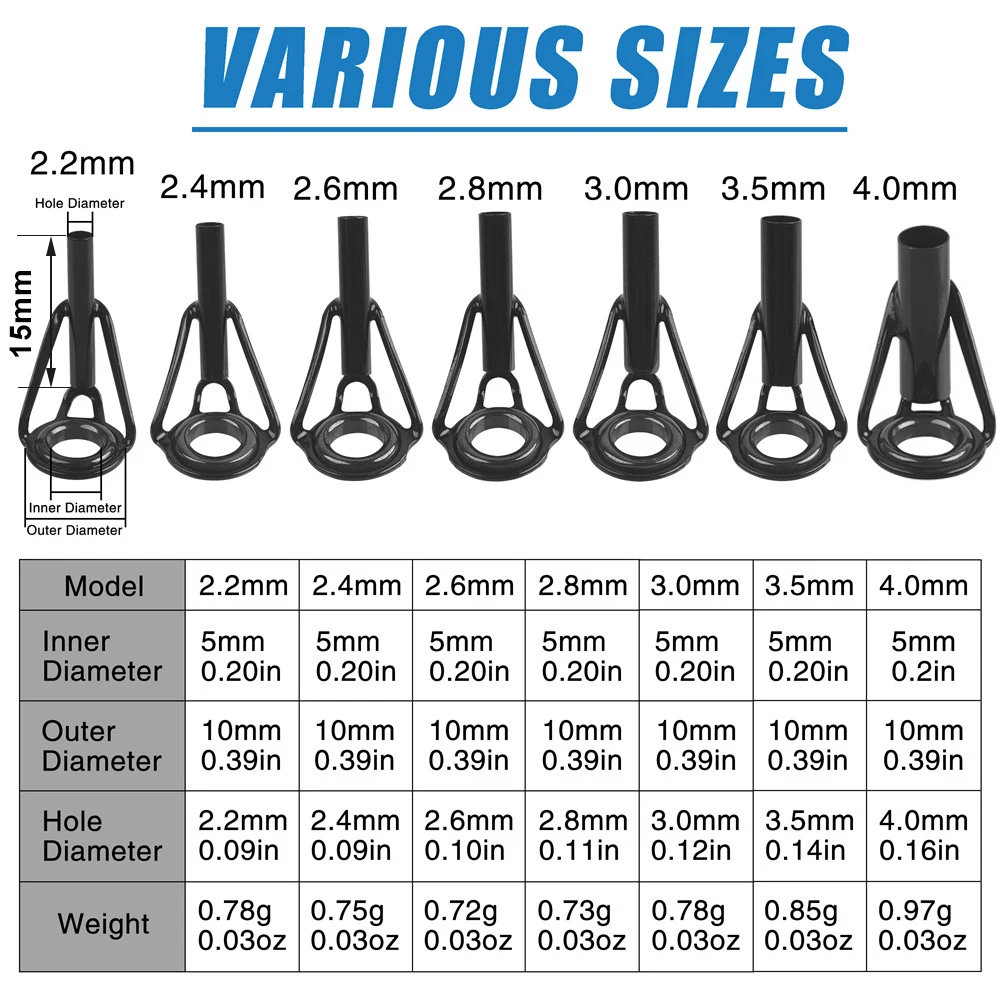 --3.Kit de reparación de puntas y guías de caña de pescar de diferentes tamaños, más opciones.