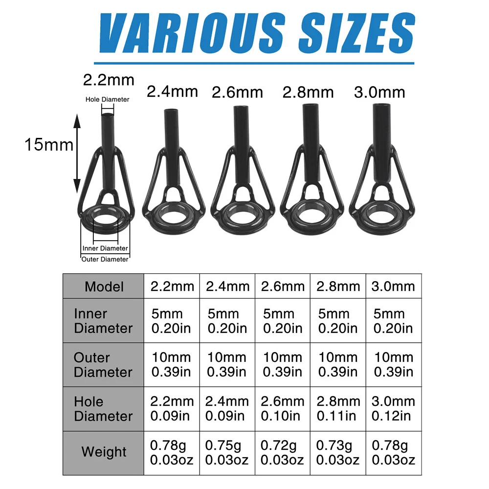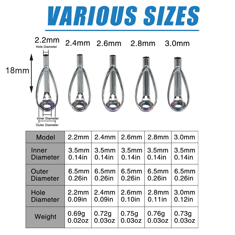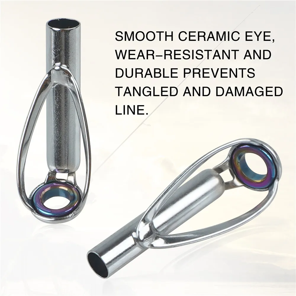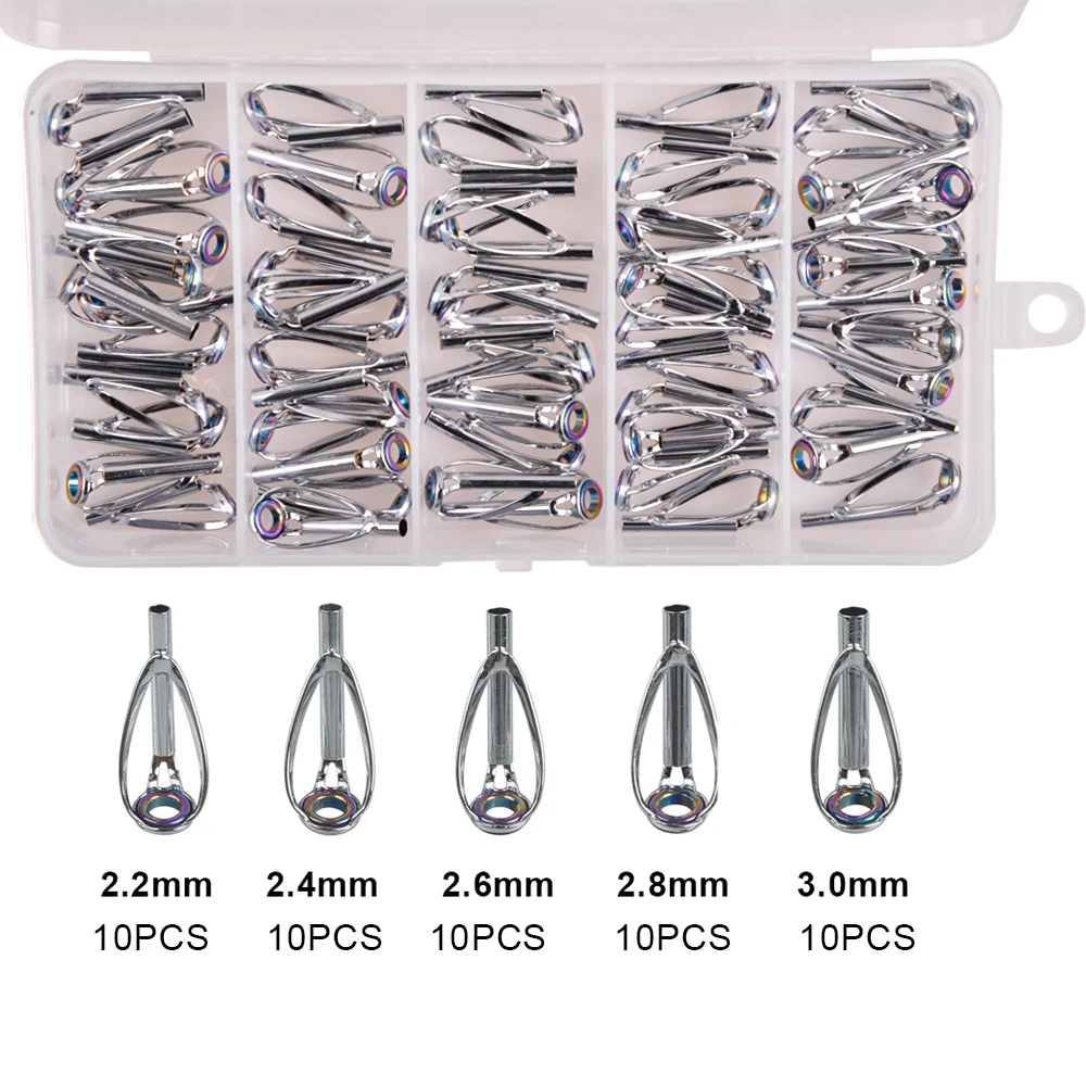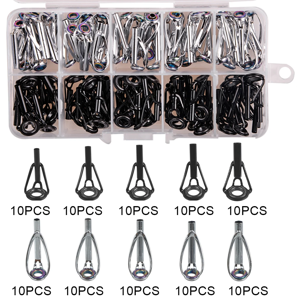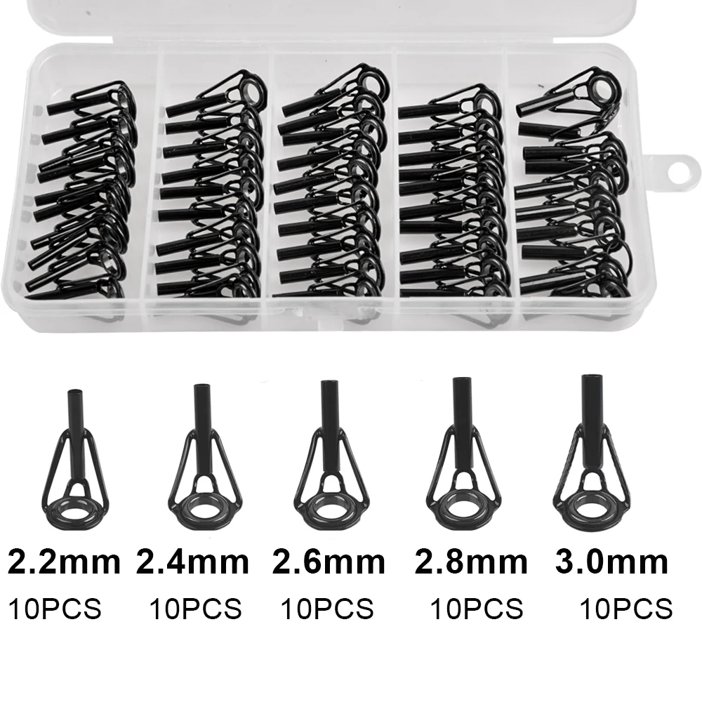 Kit de reparación de punta de caña de agua salada, Kit de reparación de caña, puntas de caña de pescar, anillo de cerámica de acero inoxidable, reemplazo de reparación de varilla guía, 50/100 Uds.