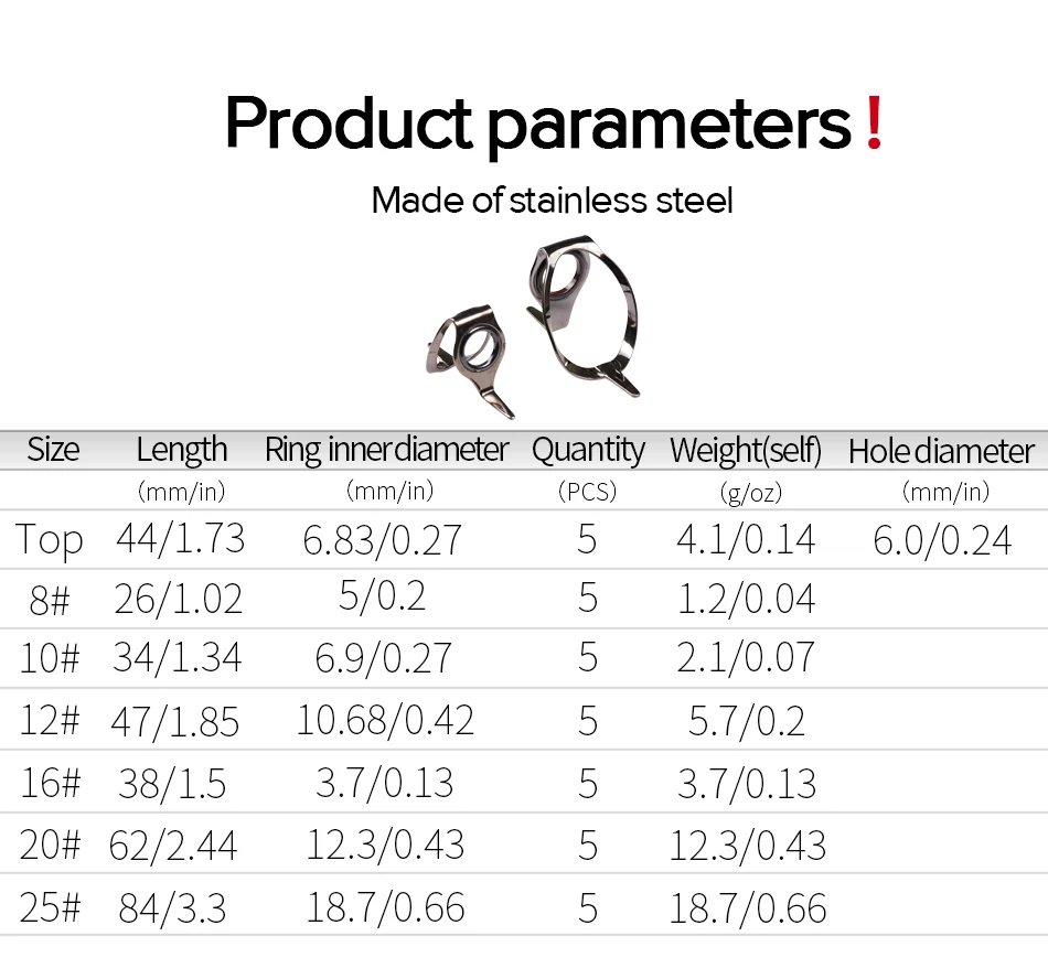 1. Adecuado para: su diseño ligero y resistente a los enredos, el Marco acampanado es ideal para la caña de pescar en barcos y también se utiliza como guía para pelar cañas.