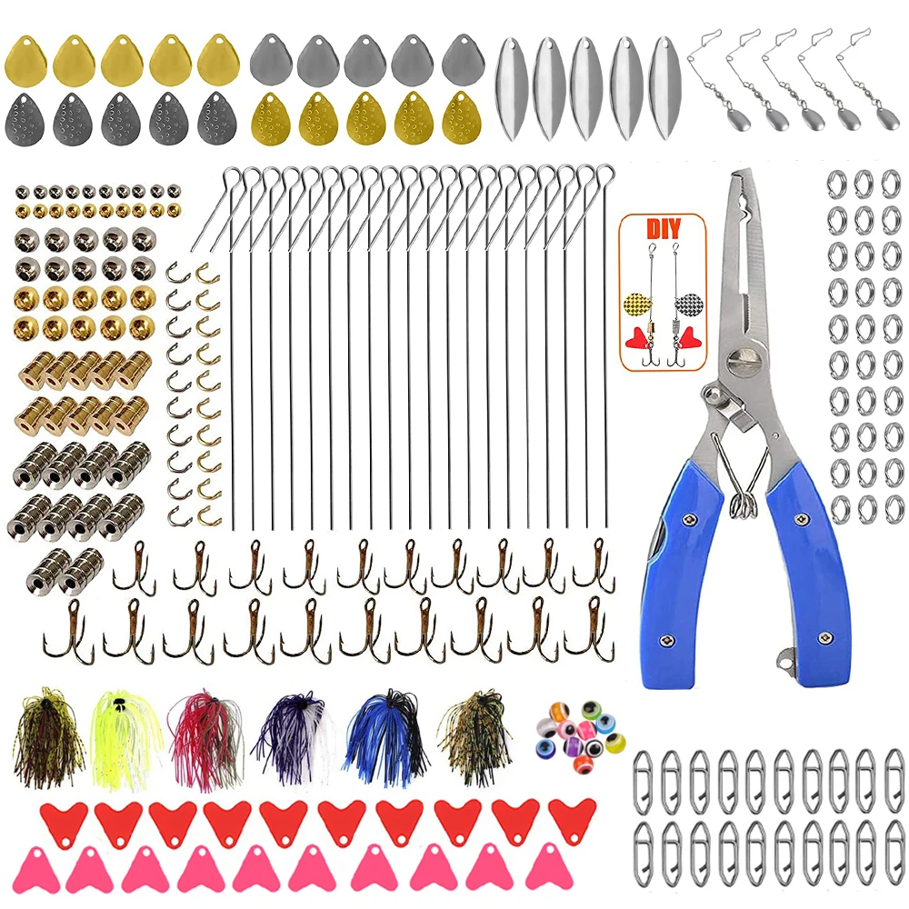 247 Uds. Kit de señuelos de cuchara de pesca con cebo giratorio, lentejuelas de Metal, anzuelo triple, alicates de prensado, aparejo de plantilla de bajo, accesorios para Señuelos de Pesca