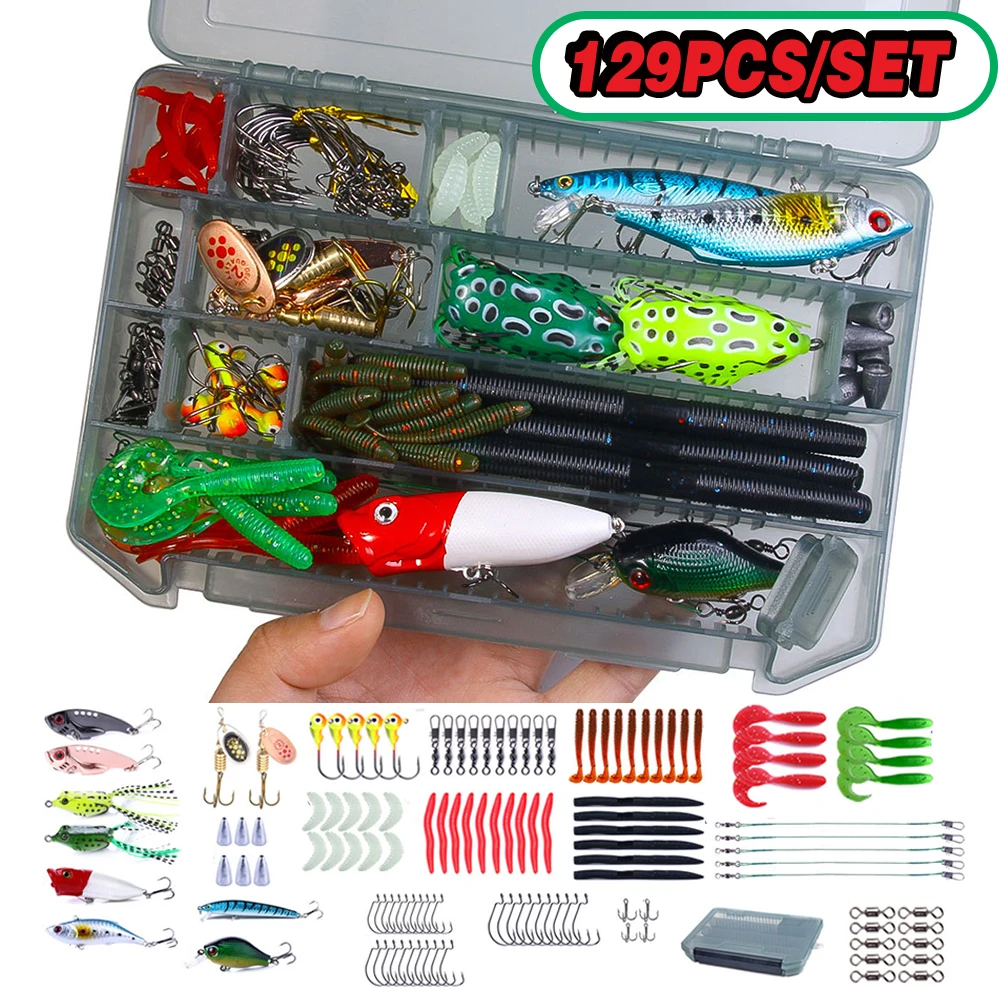 Kit de señuelo/gancho de pesca, juego de cebo suave y duro, cuchara de plantilla de Metal, aparejos de pesca, Kit de señuelo VIB mixto con caja, accesorios de aparejos de manivela