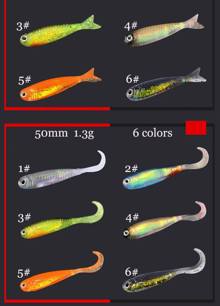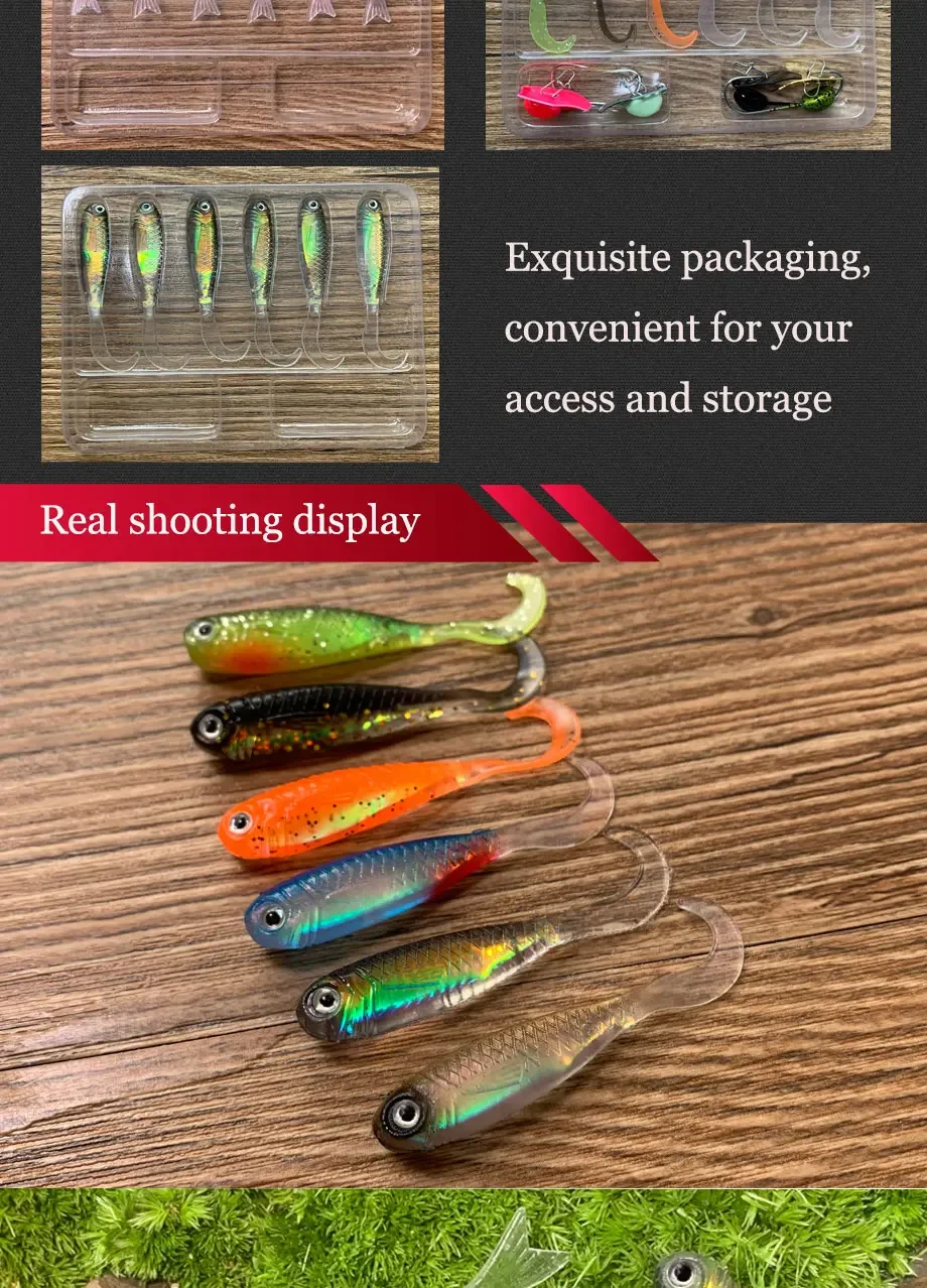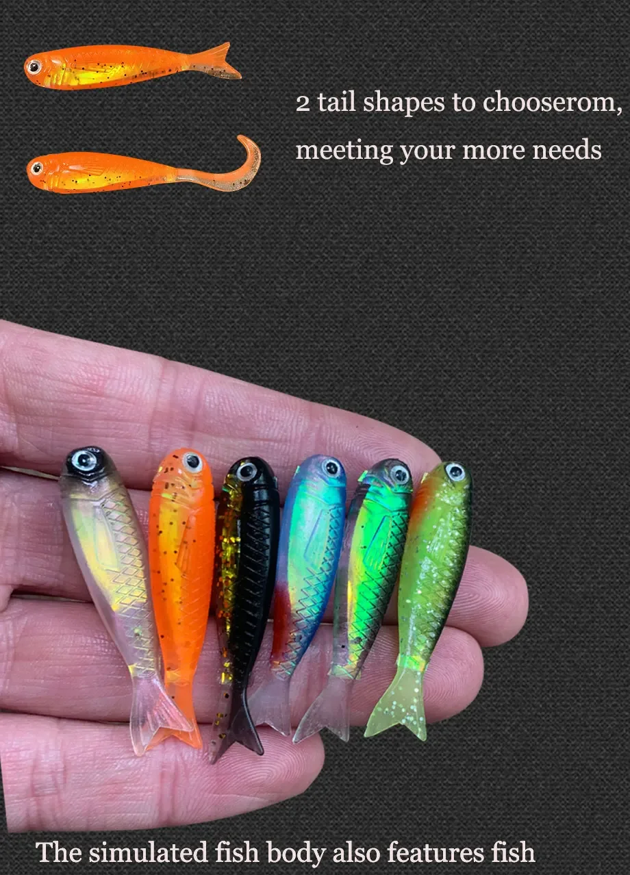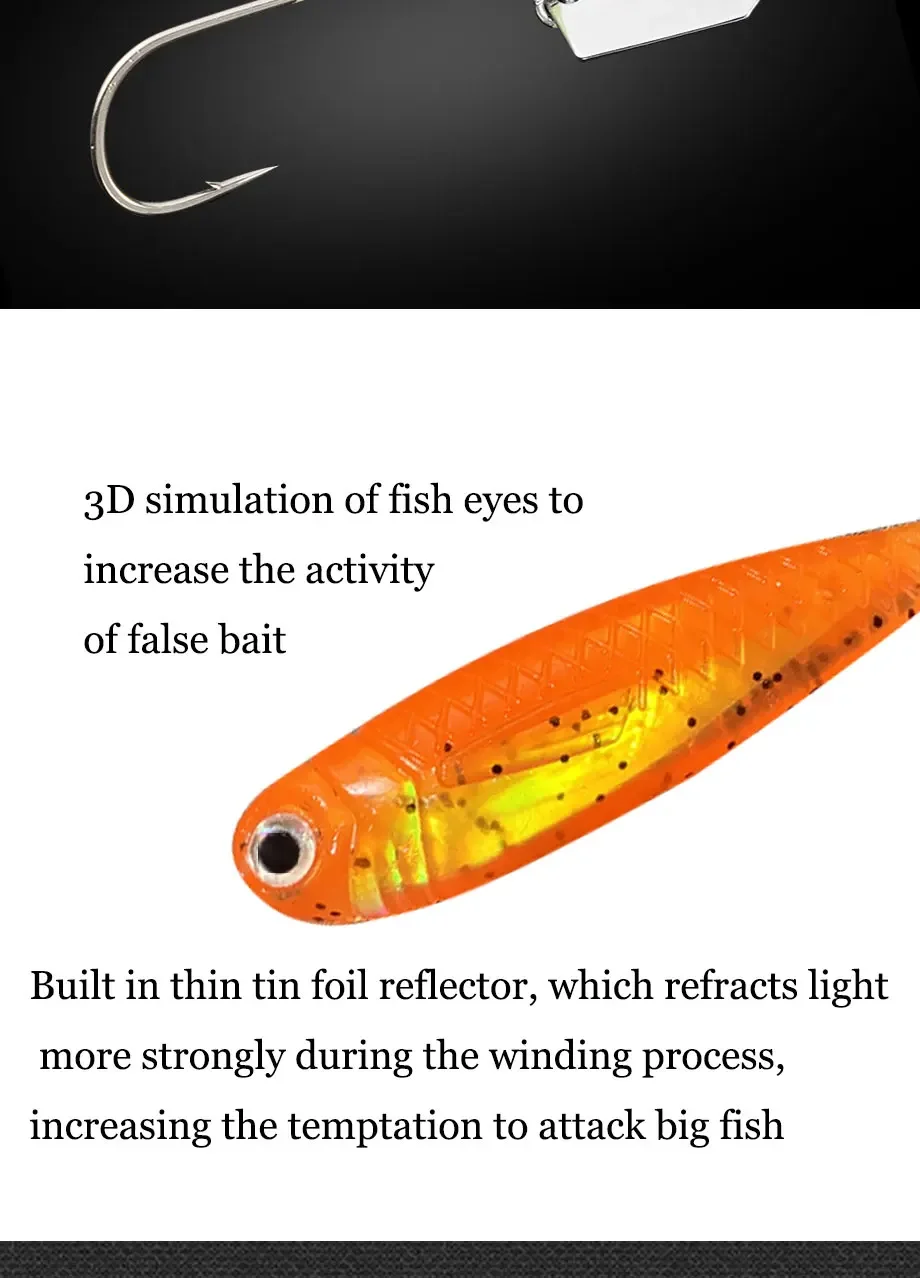 Material premium TPE, flexible y duradero, emite un fuerte sabor a pescado, atrae peces grandes.