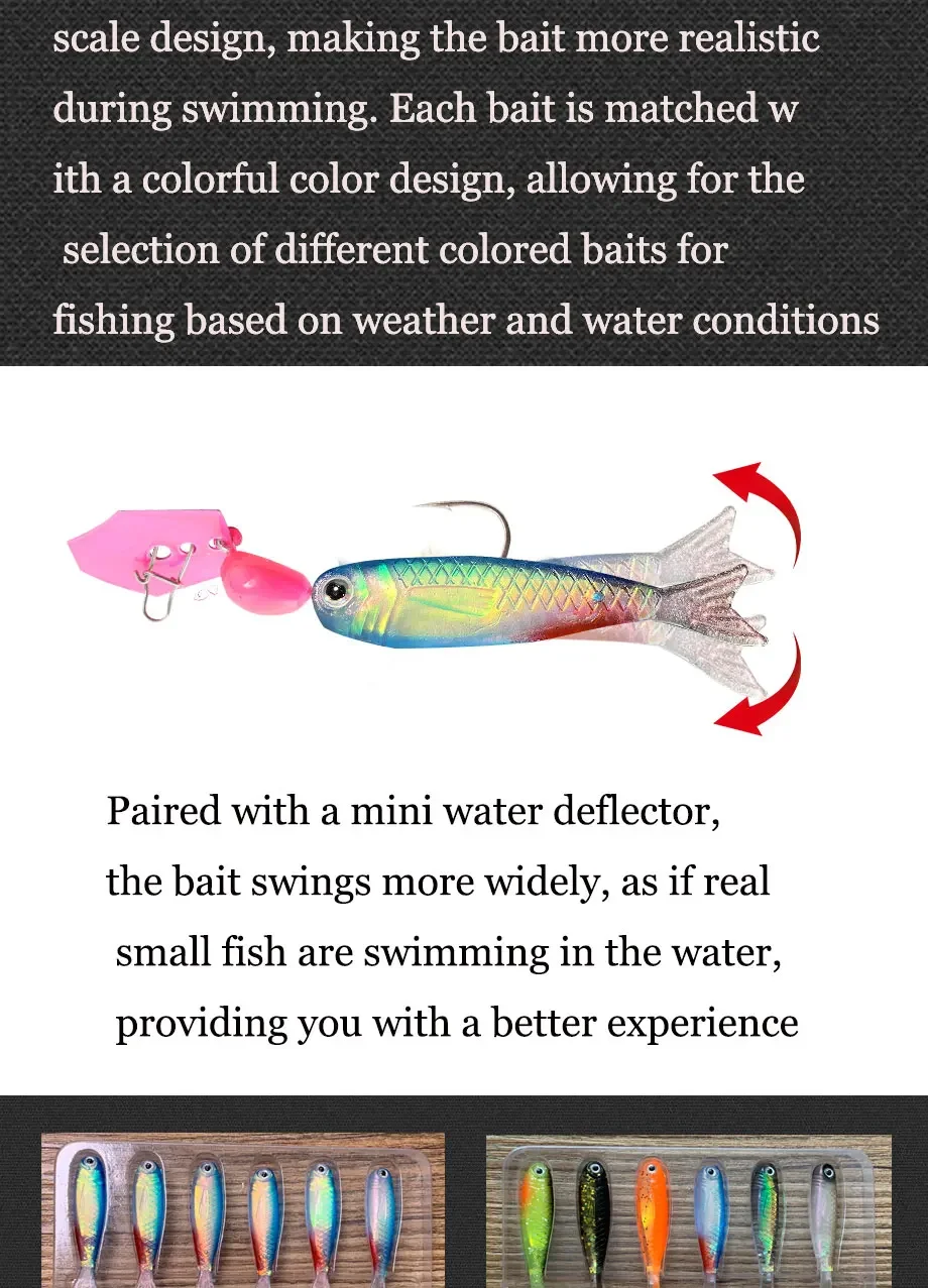 Acción realista y rápida en el agua. Excelente efecto visual para atraer peces.