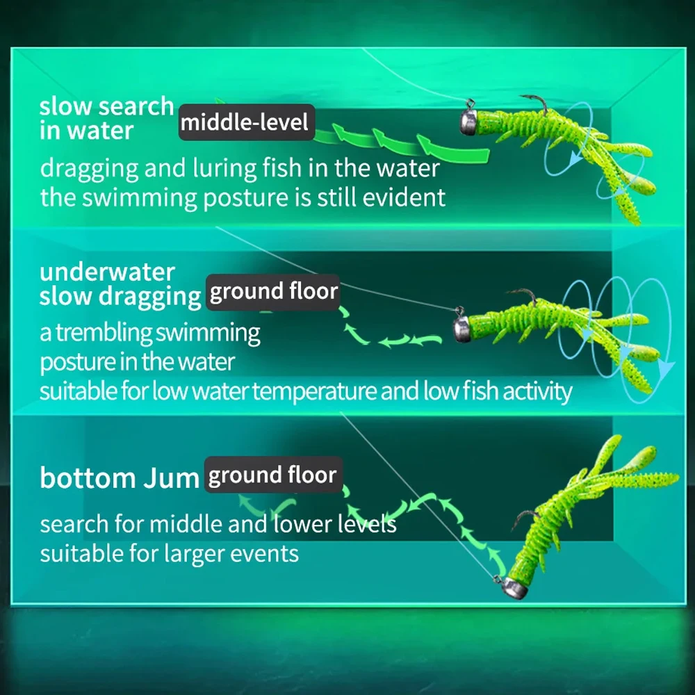 Material premium TPE, flexible y duradero, emite un fuerte sabor a pescado, atrae peces grandes.