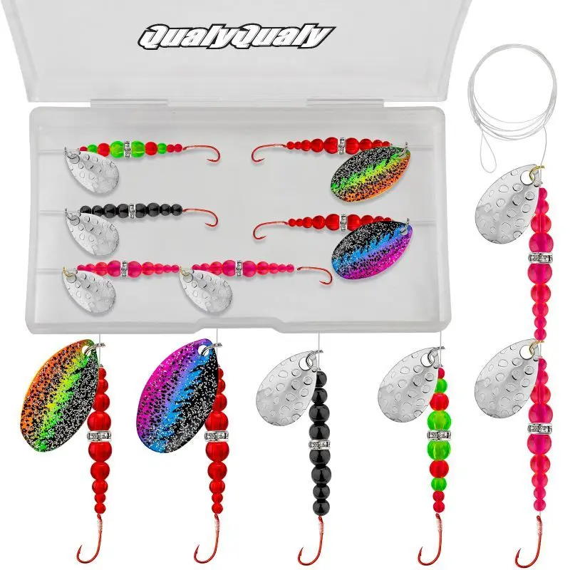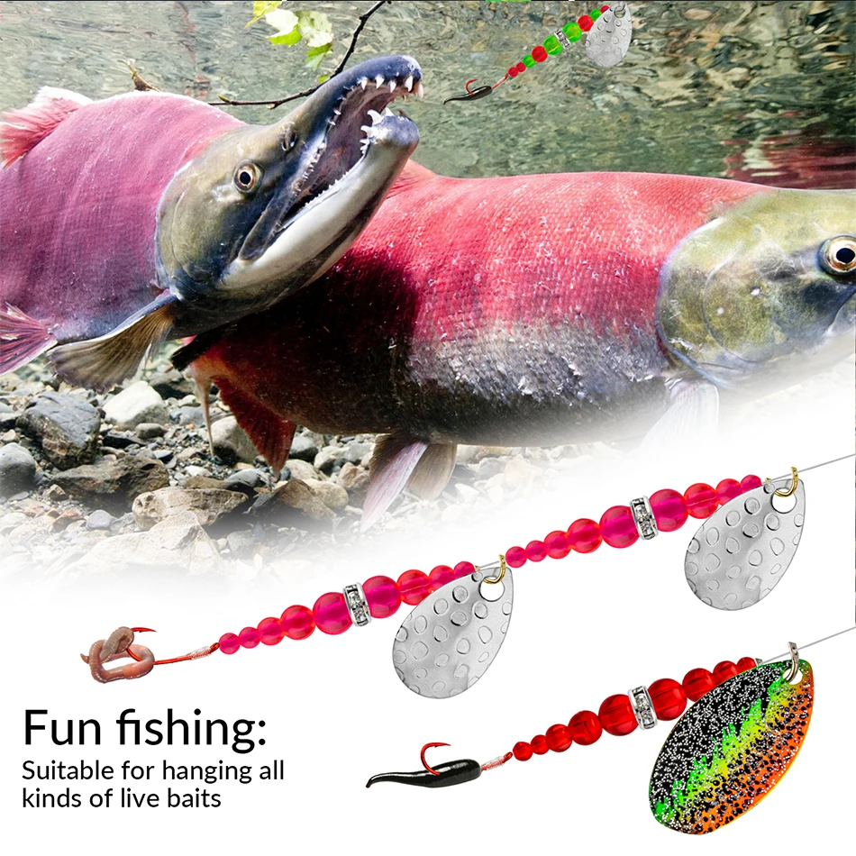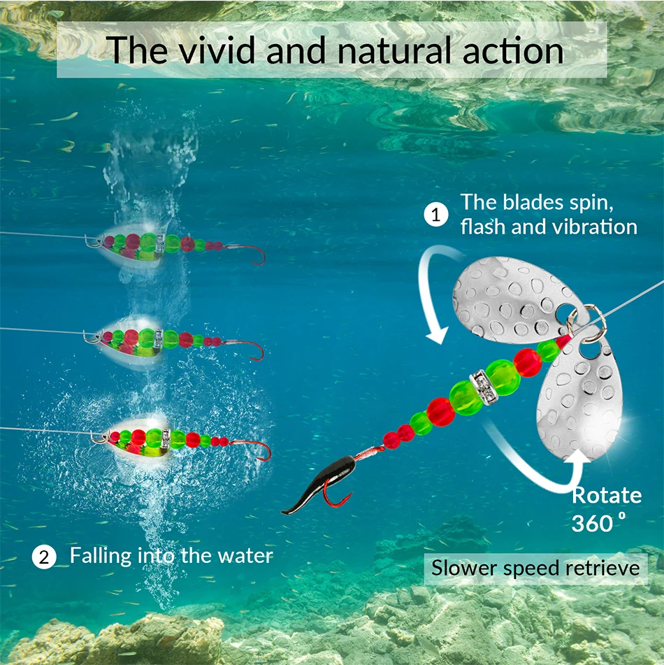 3.Lentejuelas de pesca brillantes: la acción en el agua es perfecta y no requiere una recuperación fuerte o rápida para que giren.Cuchillas brillantes giratorias que crean flash y vibración continuos para imitar la acción de natación realista de los peces pequeños, ayudando a atraer peces más grandes.