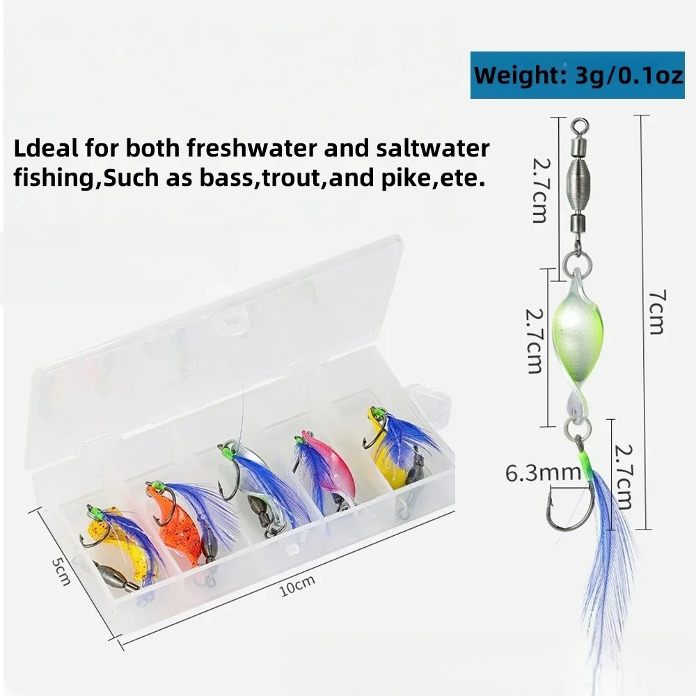 Kit de Señuelos de cucharas de pesca, 5 uds., giradores giratorios de pesca con estuche de almacenamiento, cebos giratorios de pesca duros para lubina, salmón, Lucio, perca