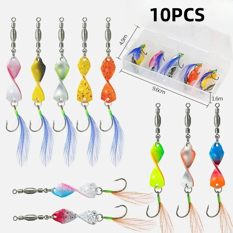 360° Rotación: El giro de latón permite que las cuchillas retorcidas giren 360° en el agua, creando un movimiento oscilante y deriva que genera salpicaduras y reflejos, mejorando la tasa de captura de peces.
