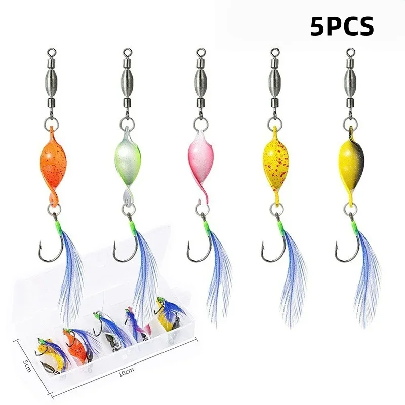 Anzuelo simple con plumas: el señuelo cuenta con un anzuelo único con plumas de primera calidad que aumenta la visibilidad y el atractivo, lo que lo hace irresistible para pescar y mejora sus posibilidades de captura.