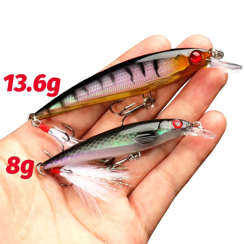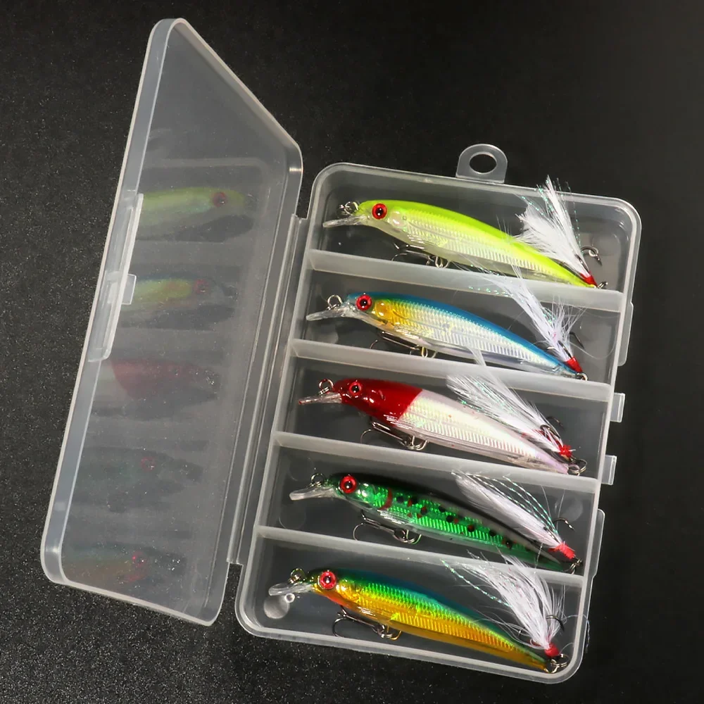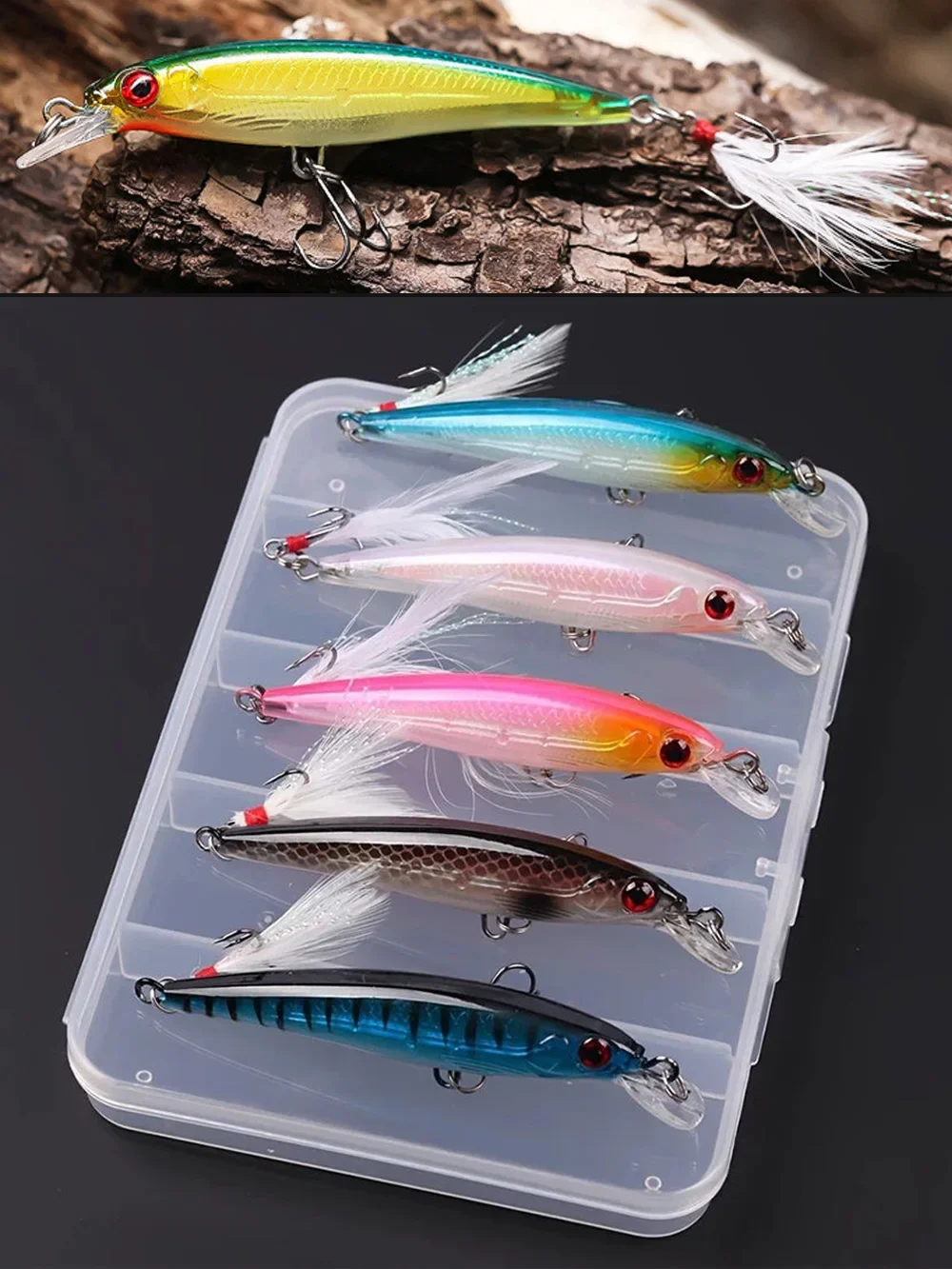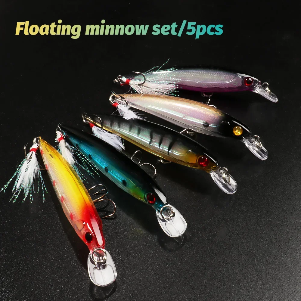 GOBAT 5 uds Kit de señuelos flotantes Minnow trucha cebo Artificial manivela cebos lubina Wobbler caja de aparejos flotante Jerkbait Popper anzuelo de agua salada Swimbait Pesca Plopper largo fundido Whopper pesca en el mar Crankbait anzuelos triples engranaje de pescador cebo de silicona