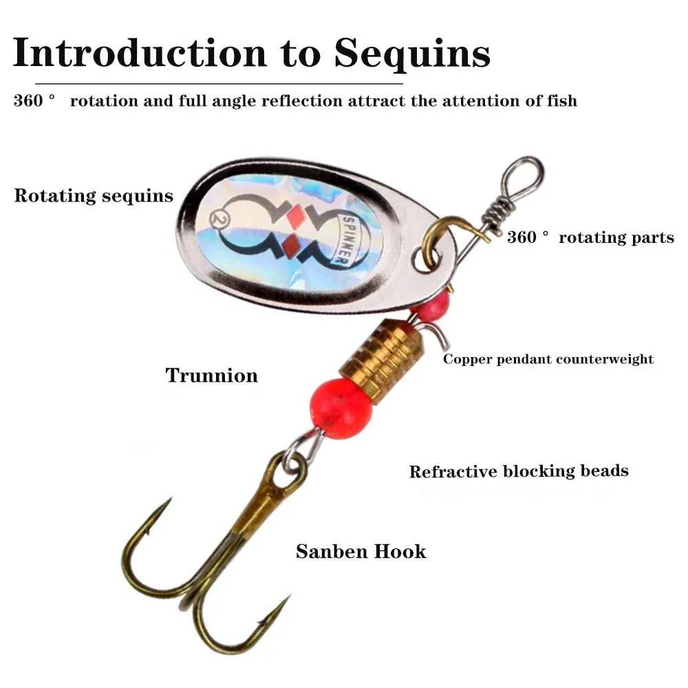 Kit de señuelos giratorios de Metal para pesca de carpa, cebo duro Artificial, Wobbler para curricán, cuchara